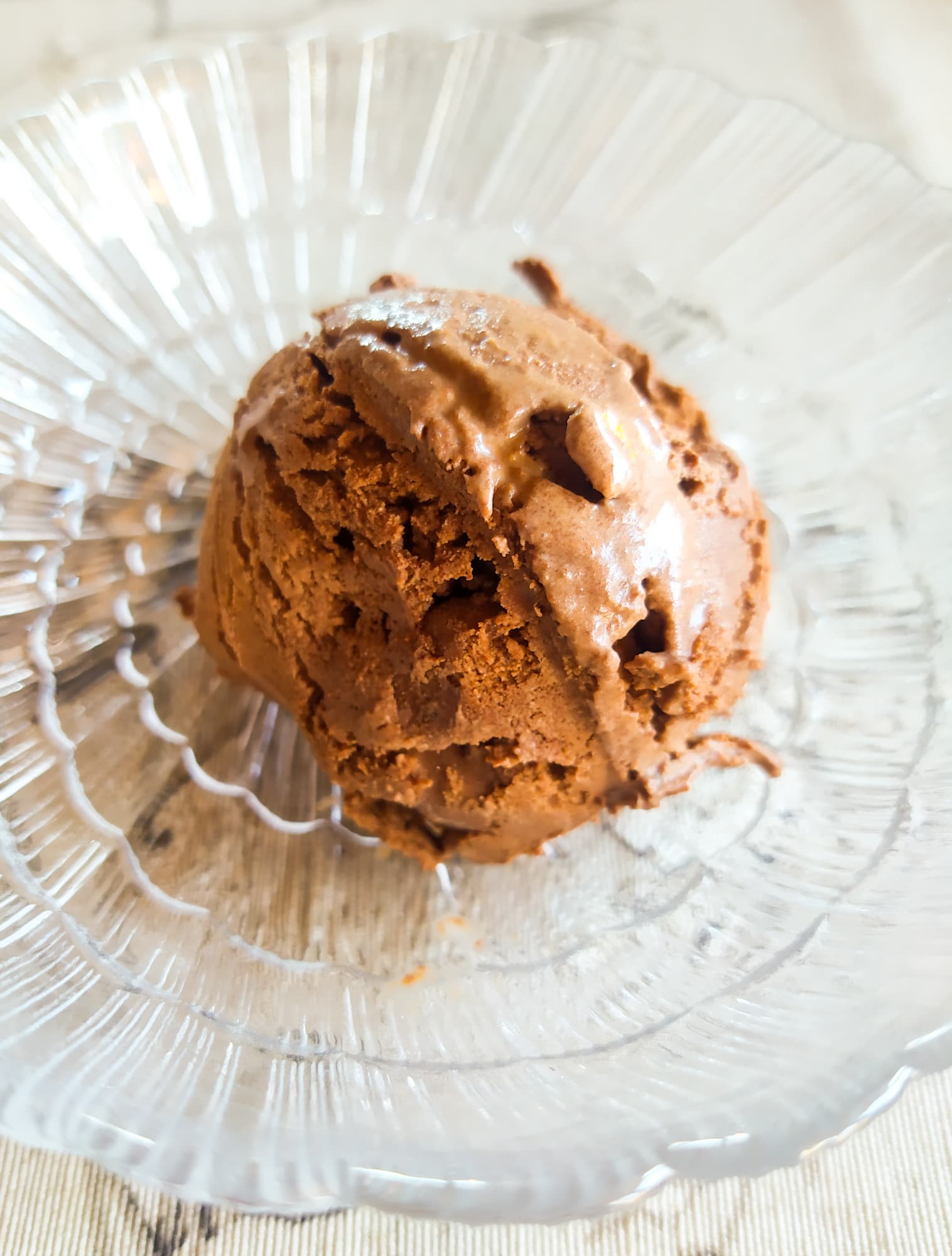 После морозилки стало возможным сделать шарик. Но теперь мороженое слишком твердое! Лучше, конечно, перед формовкой подержать контейнер в холодильнике или при комнатной температурой.