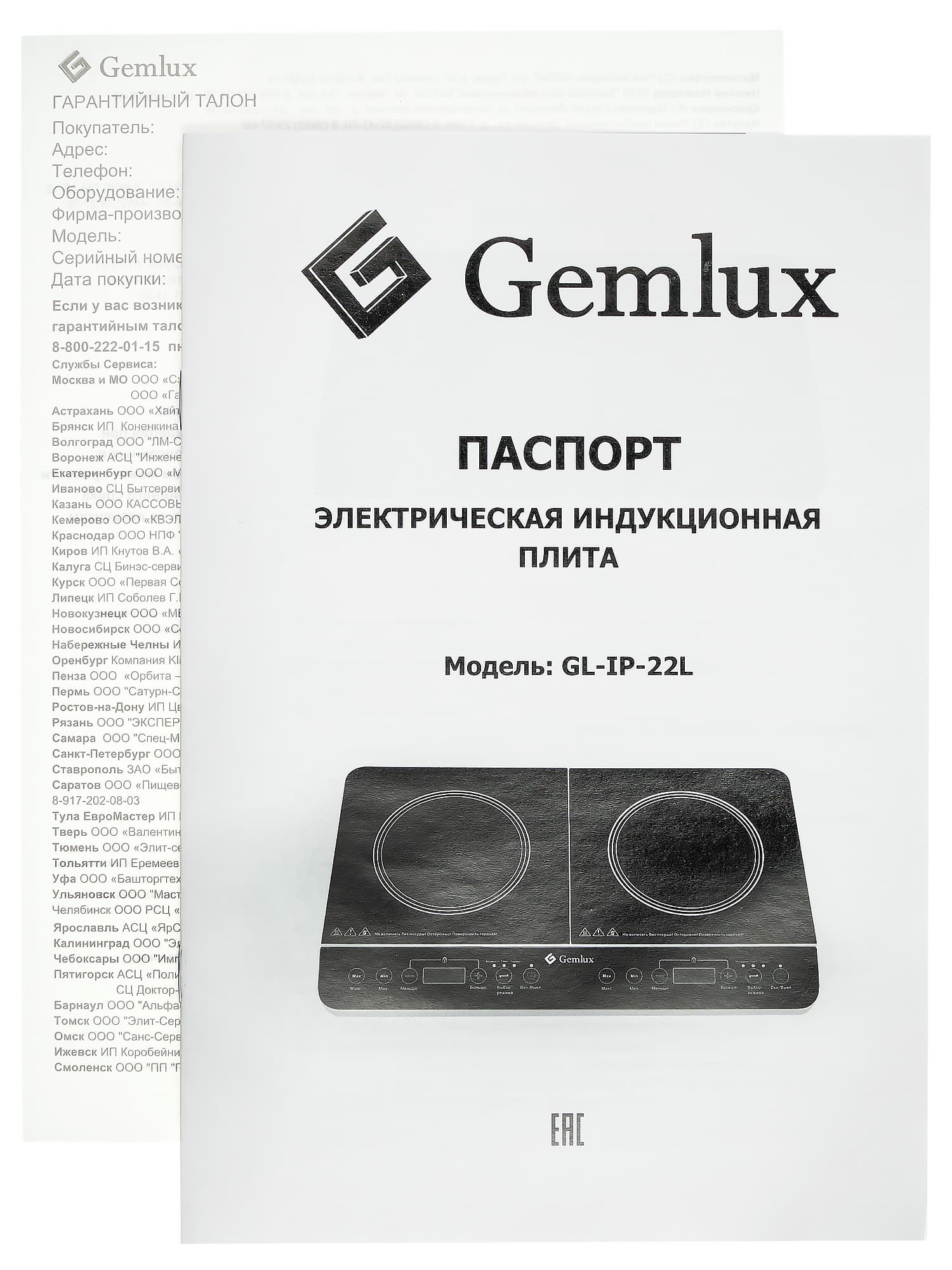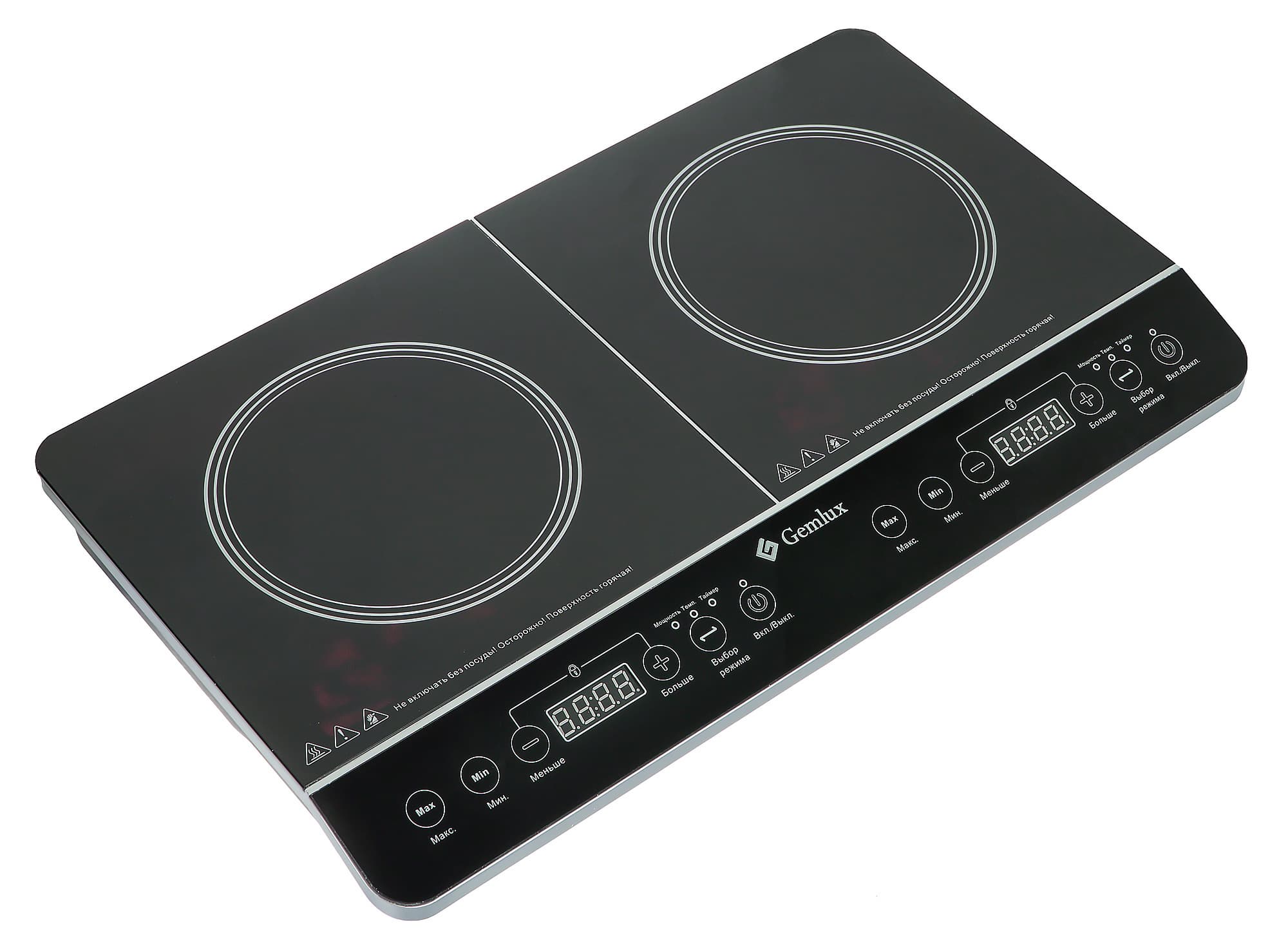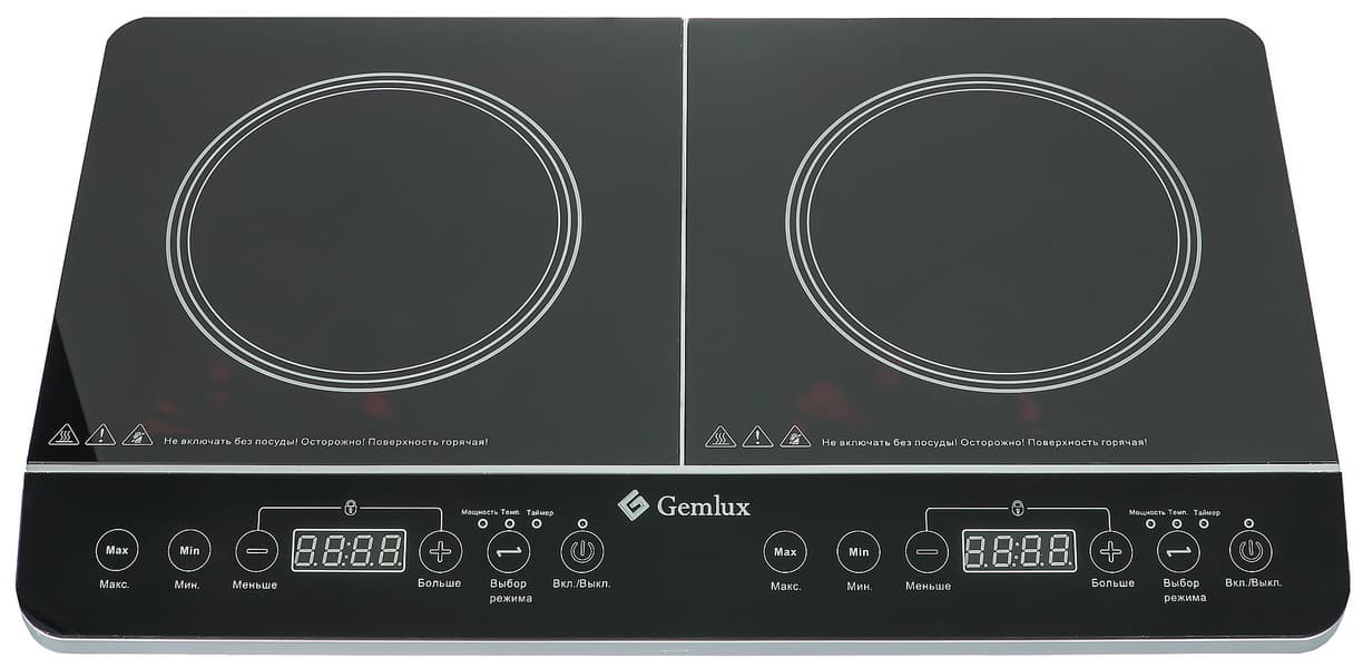 У нас на тестах индукционная двухконфорочная плитка Gemlux модели GL-IP-22L. Это достаточно большая отдельностоящая стеклокерамическая варочная поверхность с полностью раздельным управлением обеих конфорок. Выглядит прибор внушительно, а принадлежность к серии Gemlux Premium, как обещает производитель, гарантирует бескомпромиссное качество, высокую технологичность и надежность.