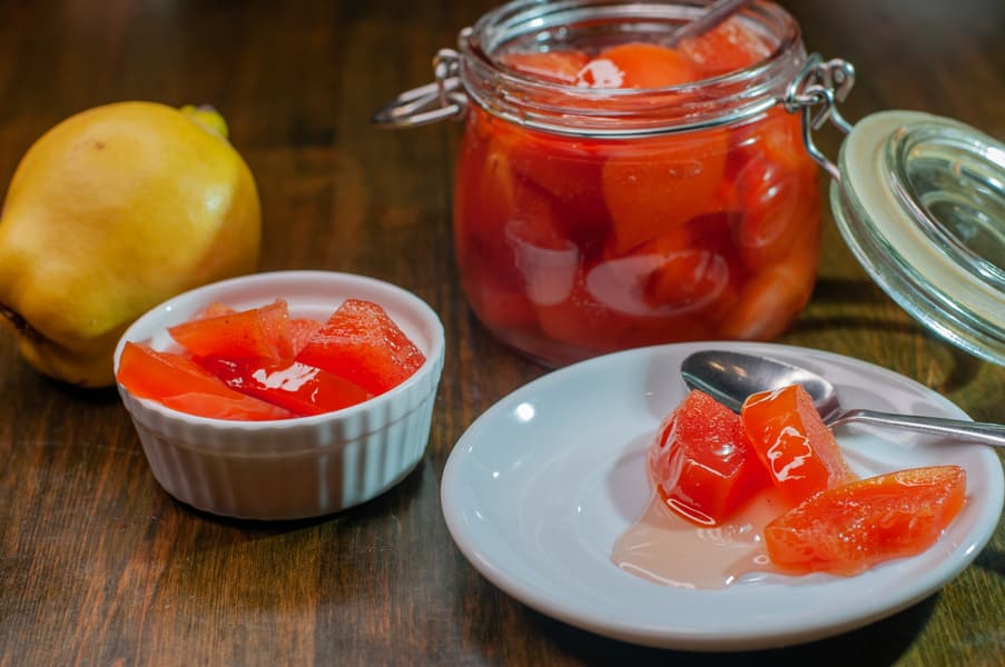 Айва прекрасно сварилась, пропиталась сахаром, при этом не развалилась и не съежилась.