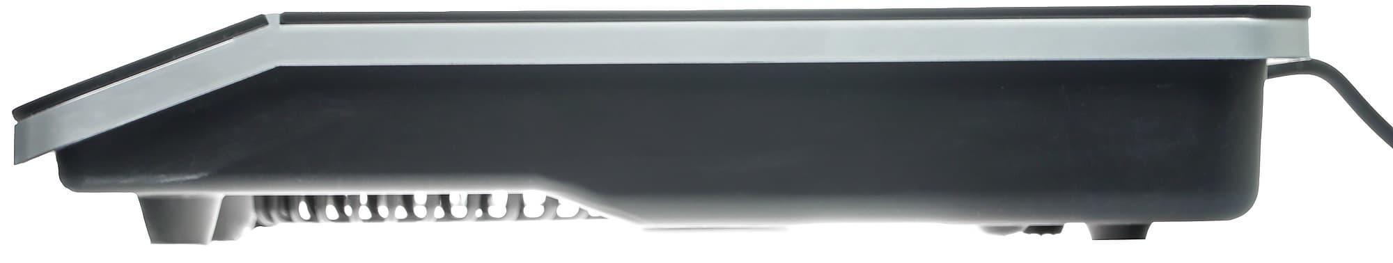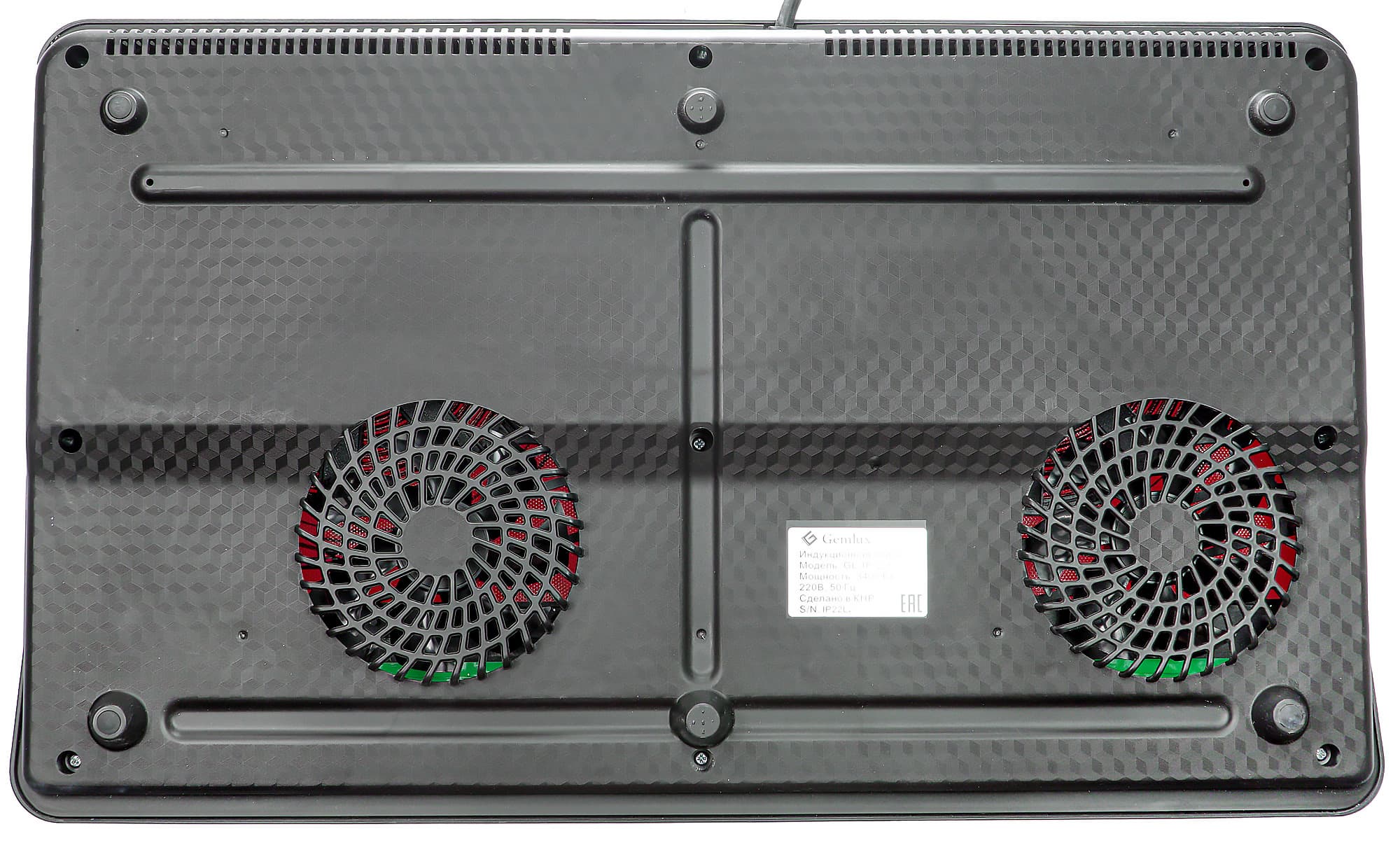 Корпус поверхности сбоку и снизу сделан из термостойкой пластмассы, незаметной под стеклокерамическим верхом. Толстый шнур питания выходит сзади.