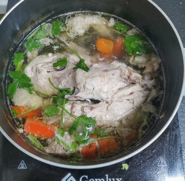Выставив плитку на мощность 800, мы сварили бульон из курицы с морковью. Бульон готовился на температуре чуть ниже 100 °C и получился прозрачным и с насыщенным вкусом.