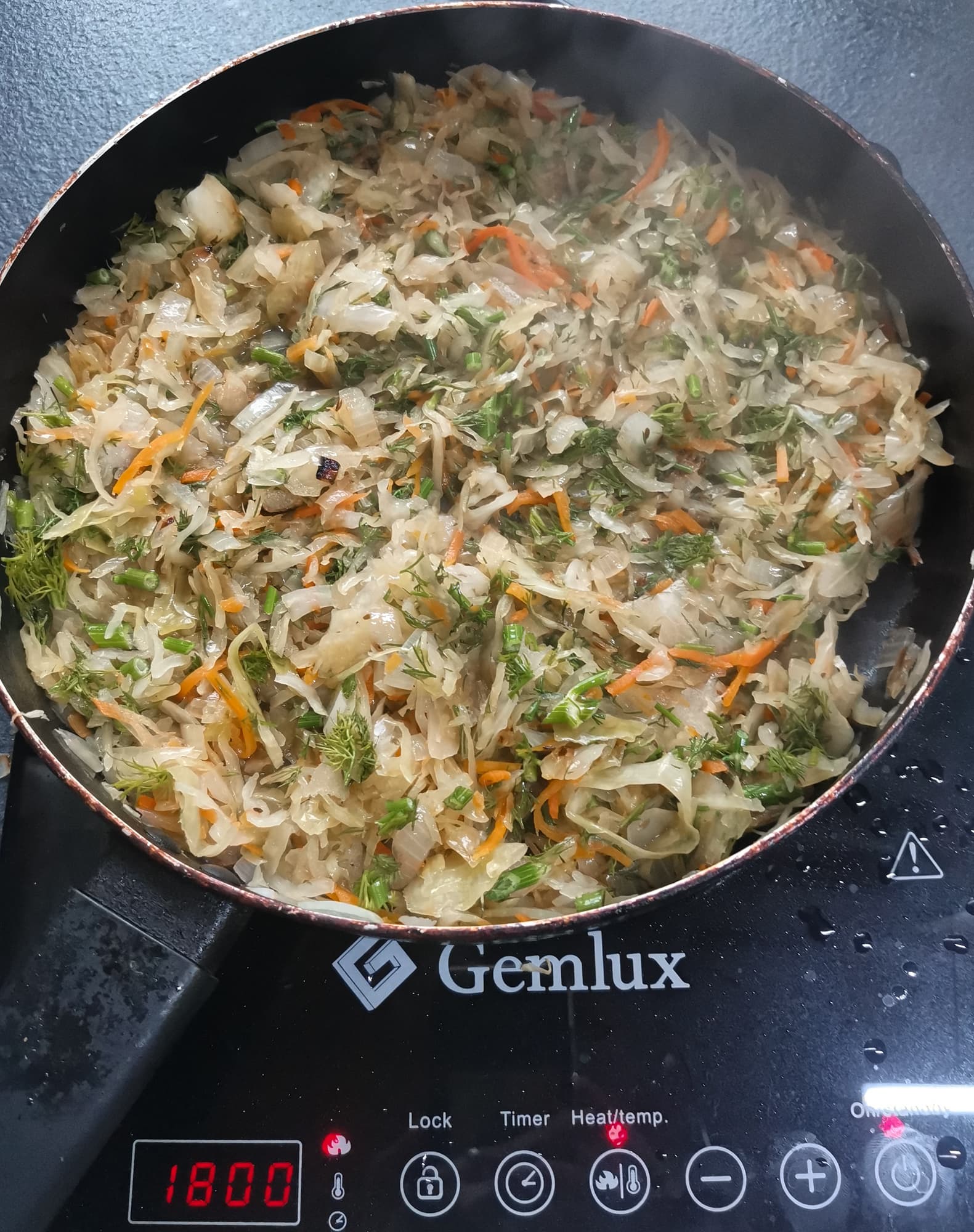 Когда капуста была готова, положили зелень. подержали еще несколько минут и убрали с плиты.