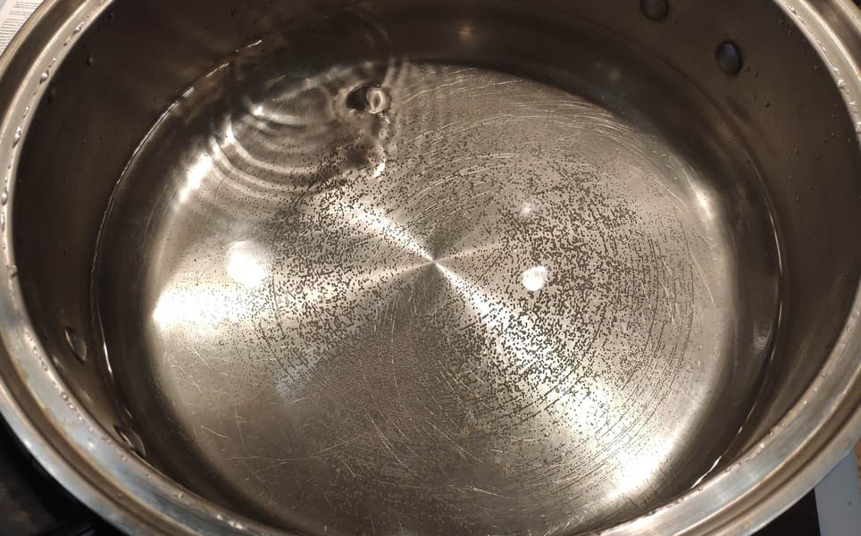 В большую кастрюлю мы налили два литра воды комнатной температуры, закрыли крышкой и включили максимальную мощность. Через 3,5 минуты мы зафиксировали внушительное количество придонных пузырьков, и первые из них уже стали отрываться от дна. Только через 6 минут закипела область «бублика» нагрева, еще минуту мы ждали, когда она станет делать это активнее, и наконец через 8 минут от начала закипела вся кастрюля.