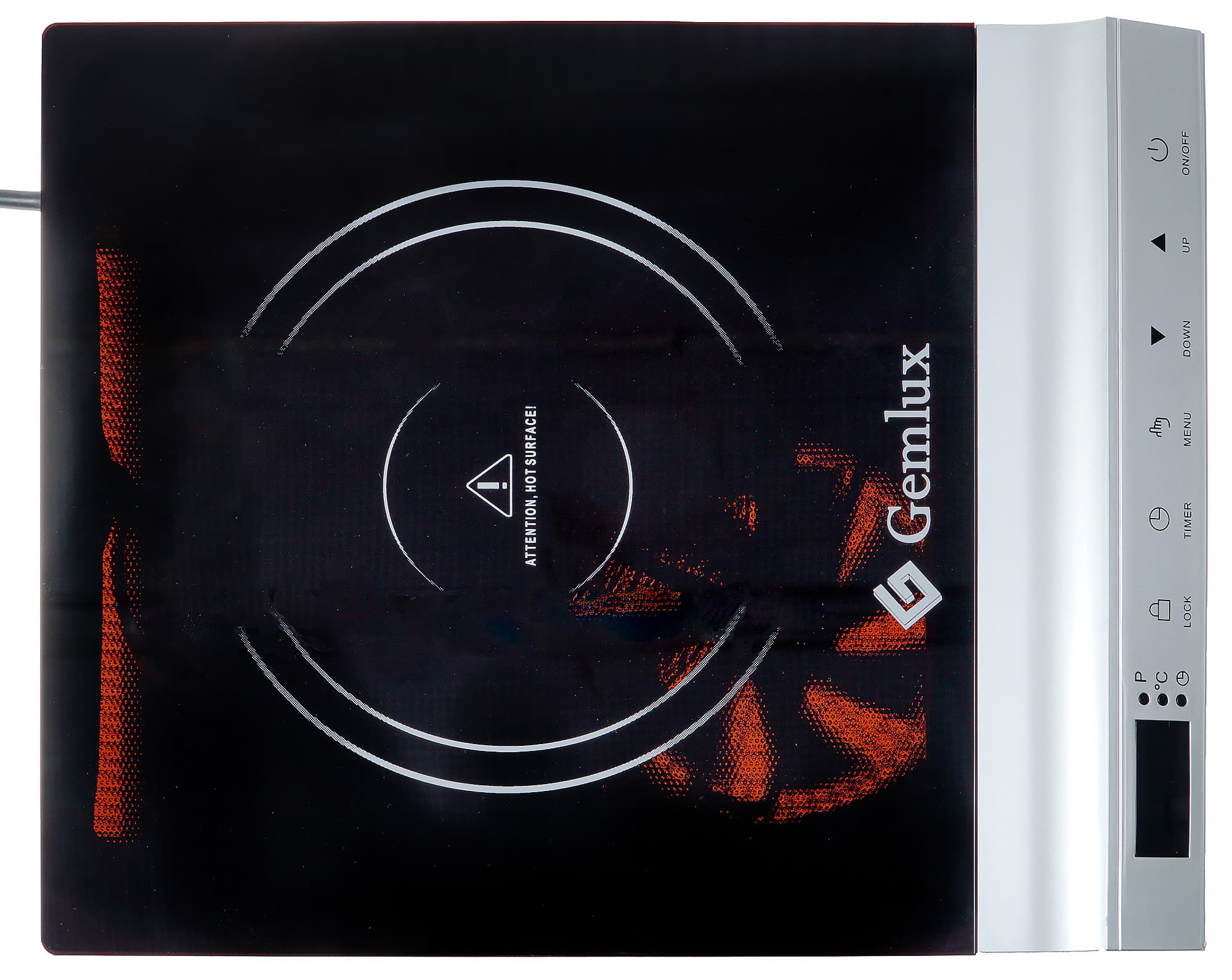 Gemlux GL-IP28TC предлагает типичную схему управления: после подключения прибора к сети следует коснуться сенсорной кнопки включения, расположенной с правого края. Плитка начнет работу после нажатия кнопки Menu с символом руки: она отвечает за переключение между режимами регулировки мощности и температуры. Выбранный режим фиксируется индикатором около буквы P или °C, загорающимся рядом с ЖК-дисплеем. Увеличивать или уменьшать заданные параметры можно с помощью кнопок с соответствующими пиктограммами и подписями Up и Down.