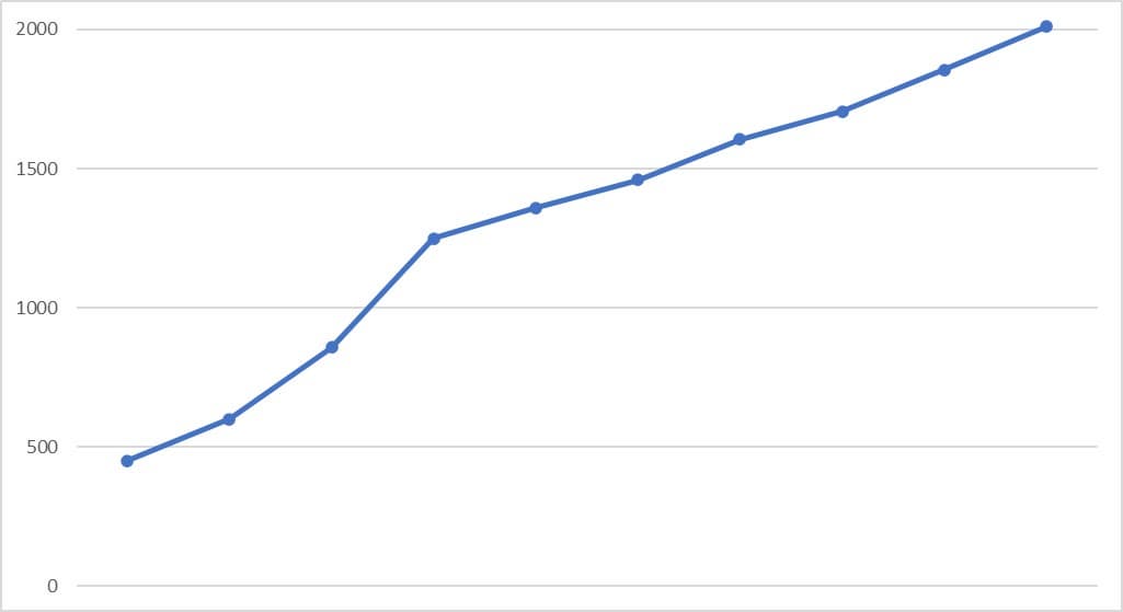 График фактического изменения мощности наглядно показывает, как сильно она вырастает с первого по четвертый режимы и как плавно увеличивается далее до максимального. Напомним, что это актуально для посуды с диаметром дна 12 см.