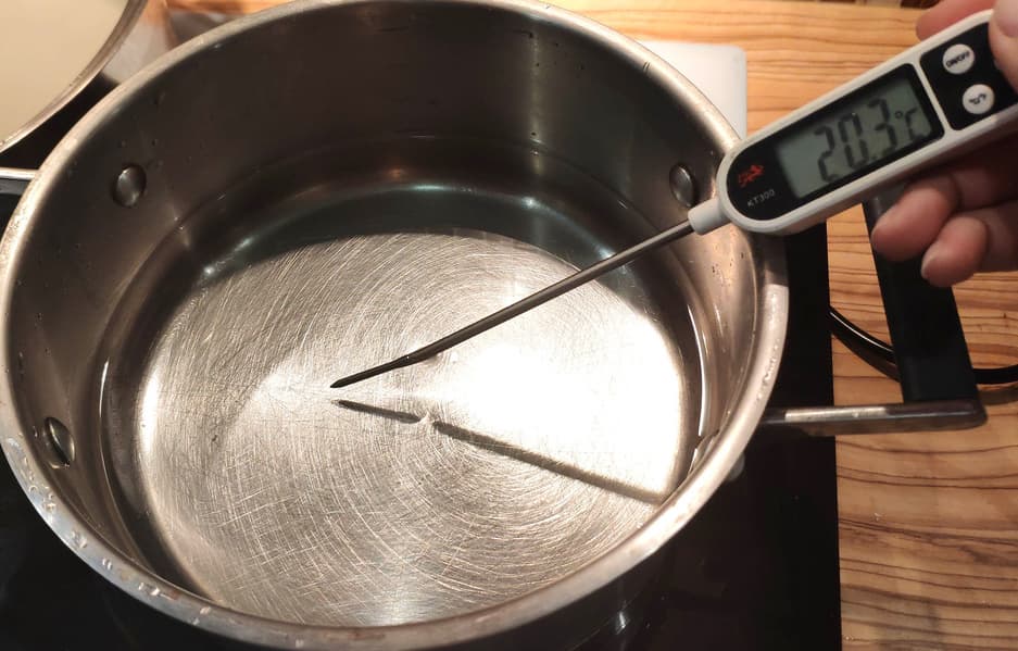 Мы добавили 500 г замороженных пельменей, и снова понадобилось 3,5 минуты, на этот раз, чтобы вода снова закипела. Спустя 16 минут от старта теста мы убедились, что пельмени полностью сварились. Приведенные нами ранее показатели фактического энергопотребления говорят о том, что вари мы пельмени в более компактной кастрюле с диаметром дна 12 см, скорость варки могла быть сильно выше.