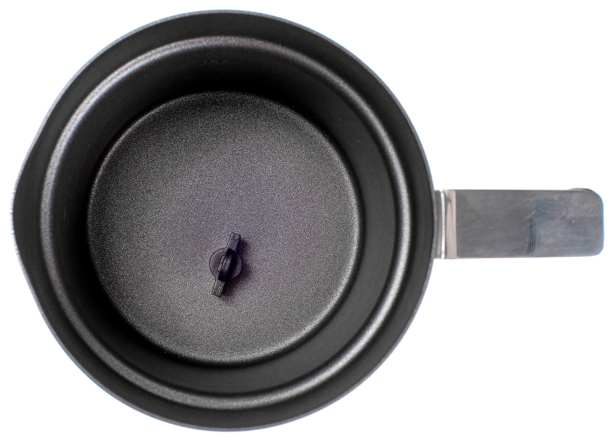 В процессе эксплуатации подогревателя мы сразу же выяснили две вещи: в комплектации не хватает пластиковой или силиконовой ложки для пены (на корпусе можно сделать для нее красивую держалку) и маленькой щетки для очистки внутренней поверхности от молока. Обычной металлической ложкой мы боялись повредить антипригарное покрытие, а стандартная силиконовая лопатка и обычная щетка для мытья слишком велики для таких объемов.