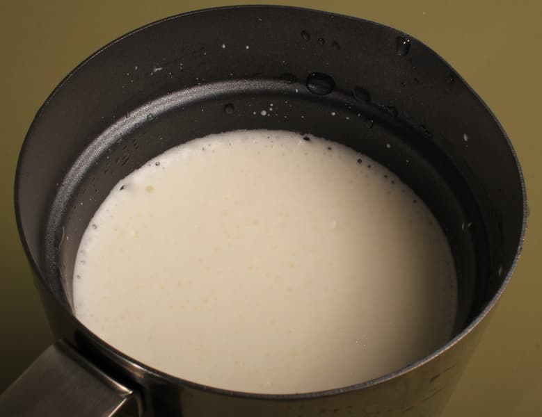 Однако есть в таком приготовлении минус: часть молока превратилась в пленку на дне, которую просто так водой не отполощешь. Пришлось прибегнуть к губке и моющему средству, а потом очень осторожно смывать мыльную пену, стараясь не мочить внешнюю часть корпуса.