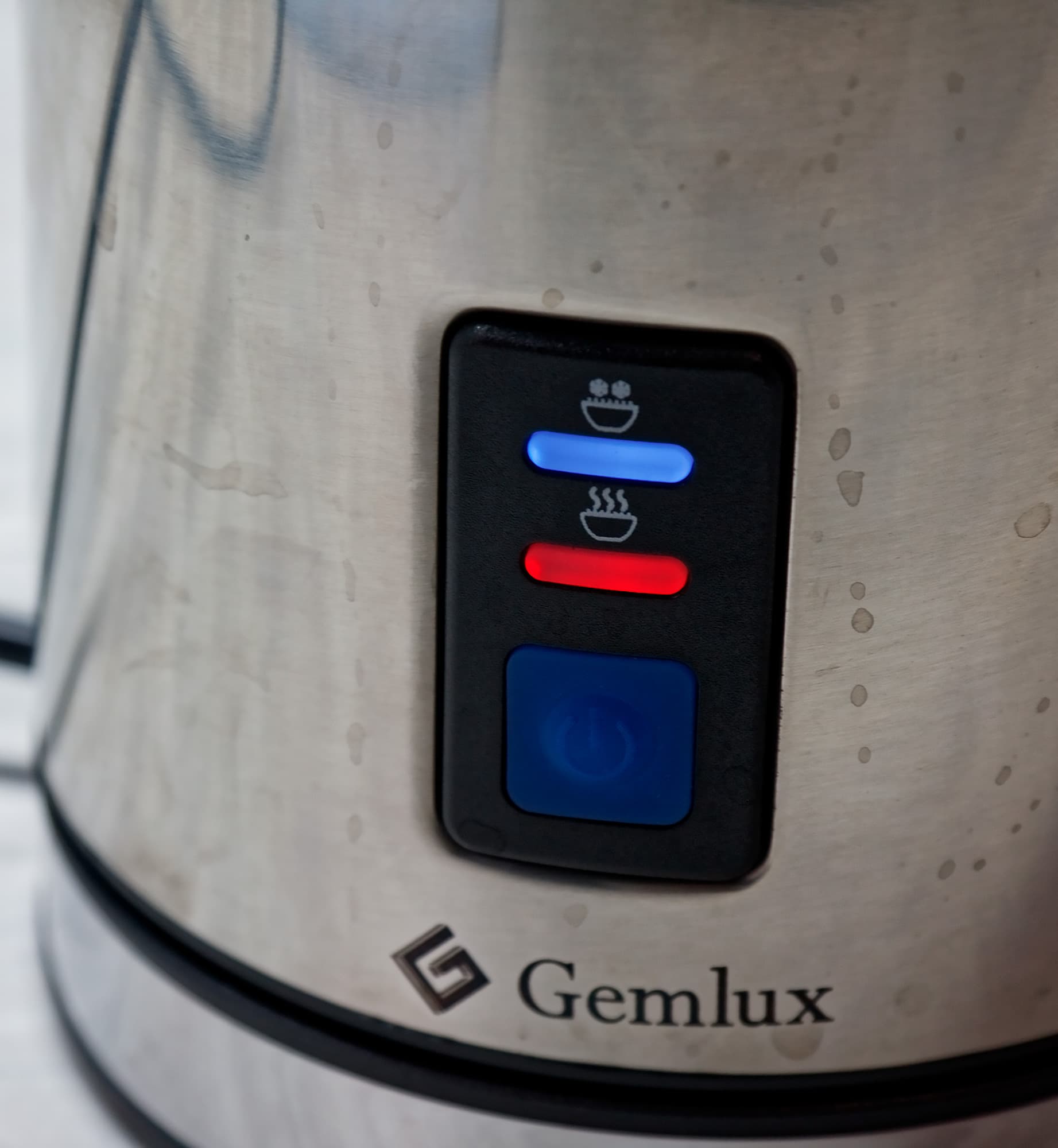 Подогреватель и вспениватель молока Gemlux GL-MF-08L проявил себя точно так же, как его младшие собратья. Небольшой кувшинчик оказался простым и полезным устройством, с помощью которого можно получить горячее (на самом деле — скорее теплое) молоко объемом до 500 мл, а также горячую либо холодную молочную пену (из молока объемом до 250 мл). Прибор прост в управлении и в уходе, не вызвал никаких сложностей в процессе эксплуатации.