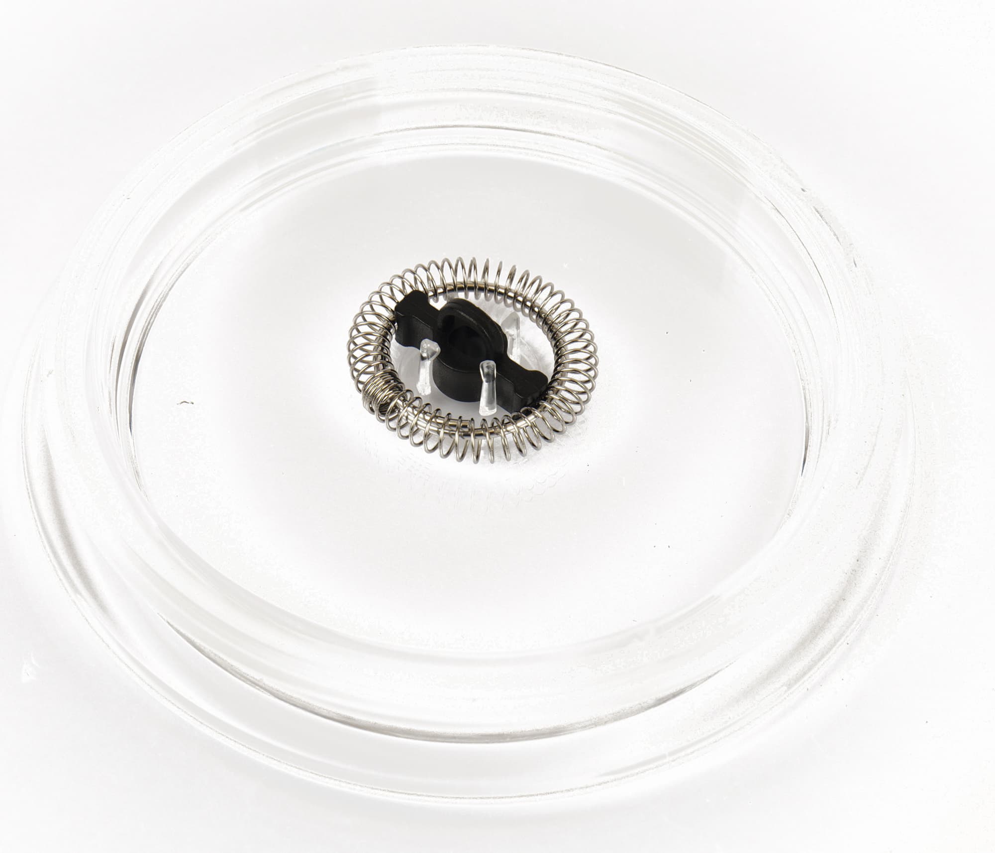Что касается самой крышки, то она сделана из прозрачного пластика и имеет уплотнительное кольцо из силикона. Благодаря этому молоко в процессе взбивания не перельется через край.
