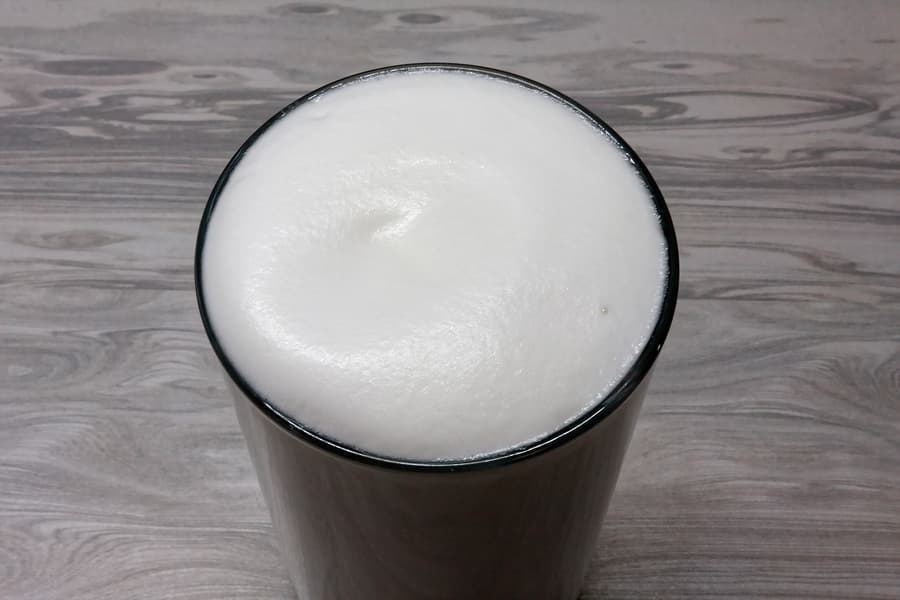Обратите внимание, насколько хорошо и уверенно держится пышная молочная «шапка», выступающая над стаканом.