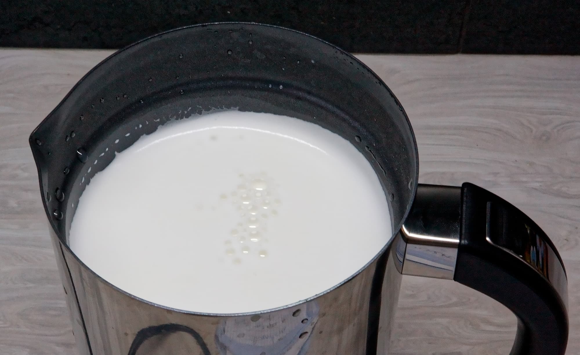 Для этого теста мы взяли тот же объем молока, однако запустили прибор без подогрева (длинное нажатие кнопки). Длительность работы программы — 2 минуты.