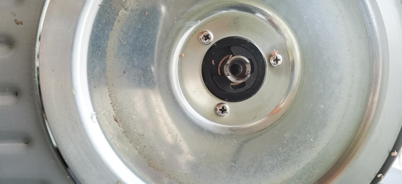 Кожух крепится одним большим винтом, диск — тремя небольшими винтами. Снимается, раскручивается и собирается обратно вся конструкция без проблем.