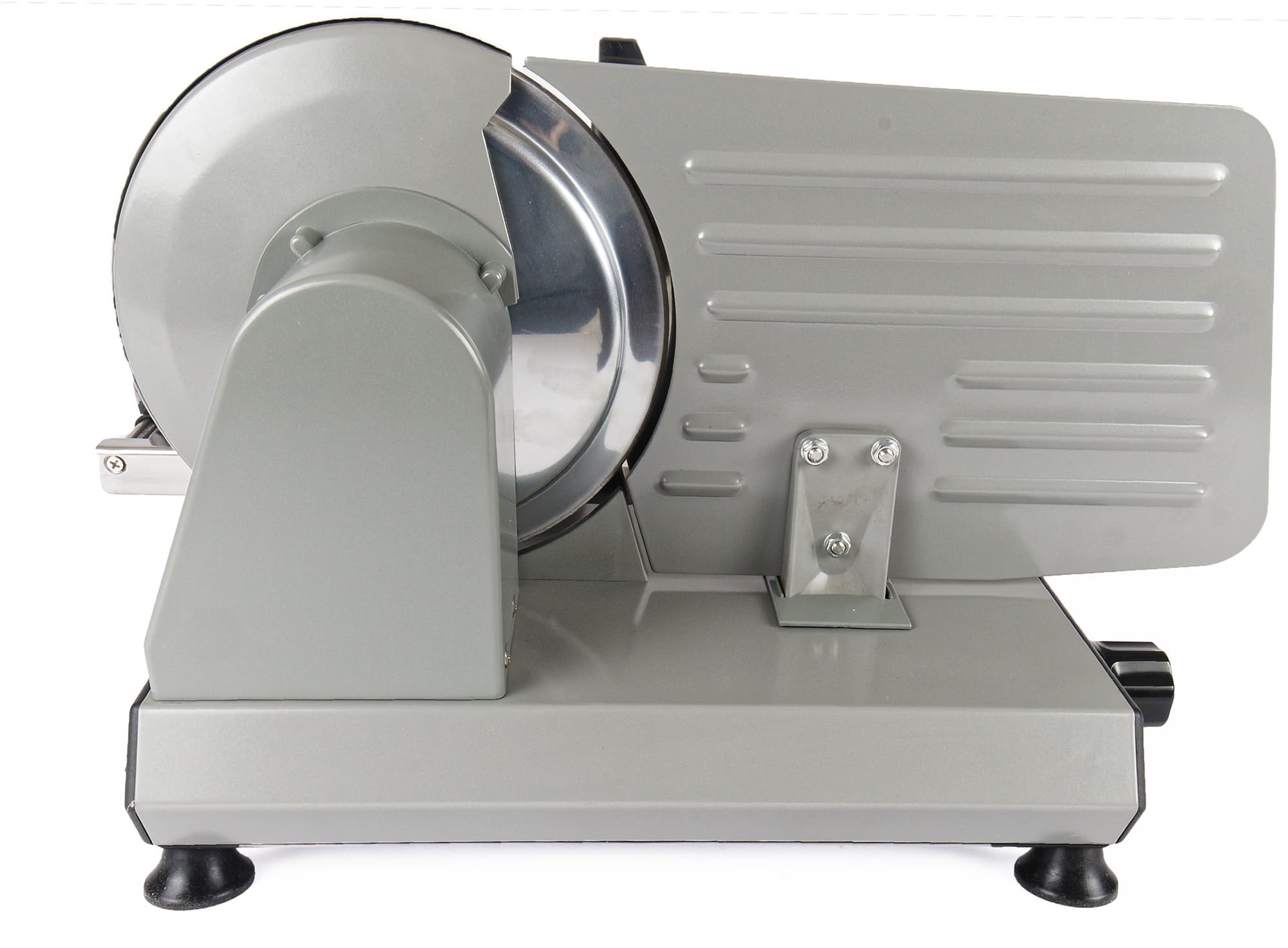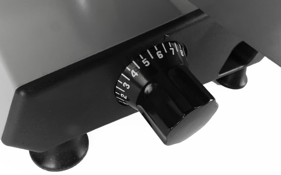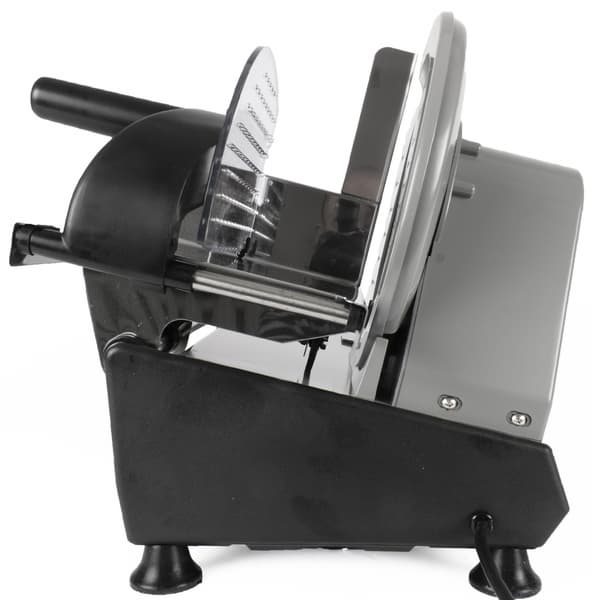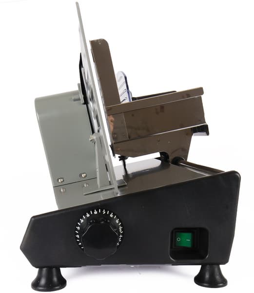 Ломтерезка снабжена защитным кожухом, поэтому более безопасна, имеет больший диаметр реза. Регулировка толщины работает корректно. Прибор может эксплуатироваться непрерывно 10 минут, после чего необходима техническая пауза еще на 10 минут.