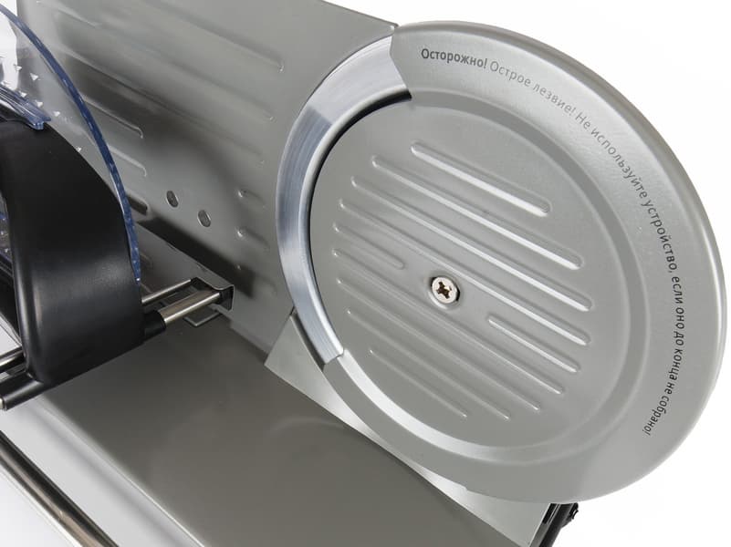 То, что сам диск для нарезки находится в кожухе, значительно снижает травмоопасность прибора, как для пользователя, так и для оказавшихся рядом случайных людей.