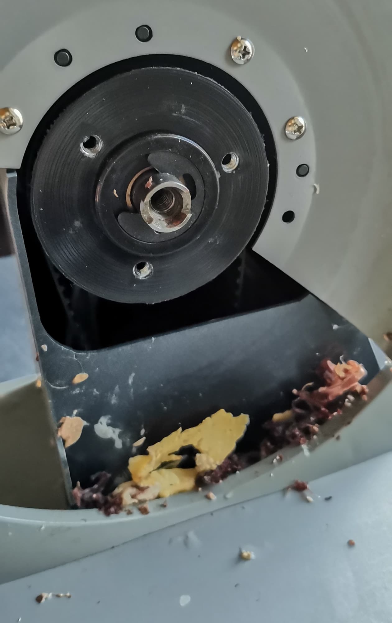Еще одна особенность ножевого диска в кожухе — то, что мелкие кусочки с ножа забиваются внутрь и достать их можно, только сняв диск.