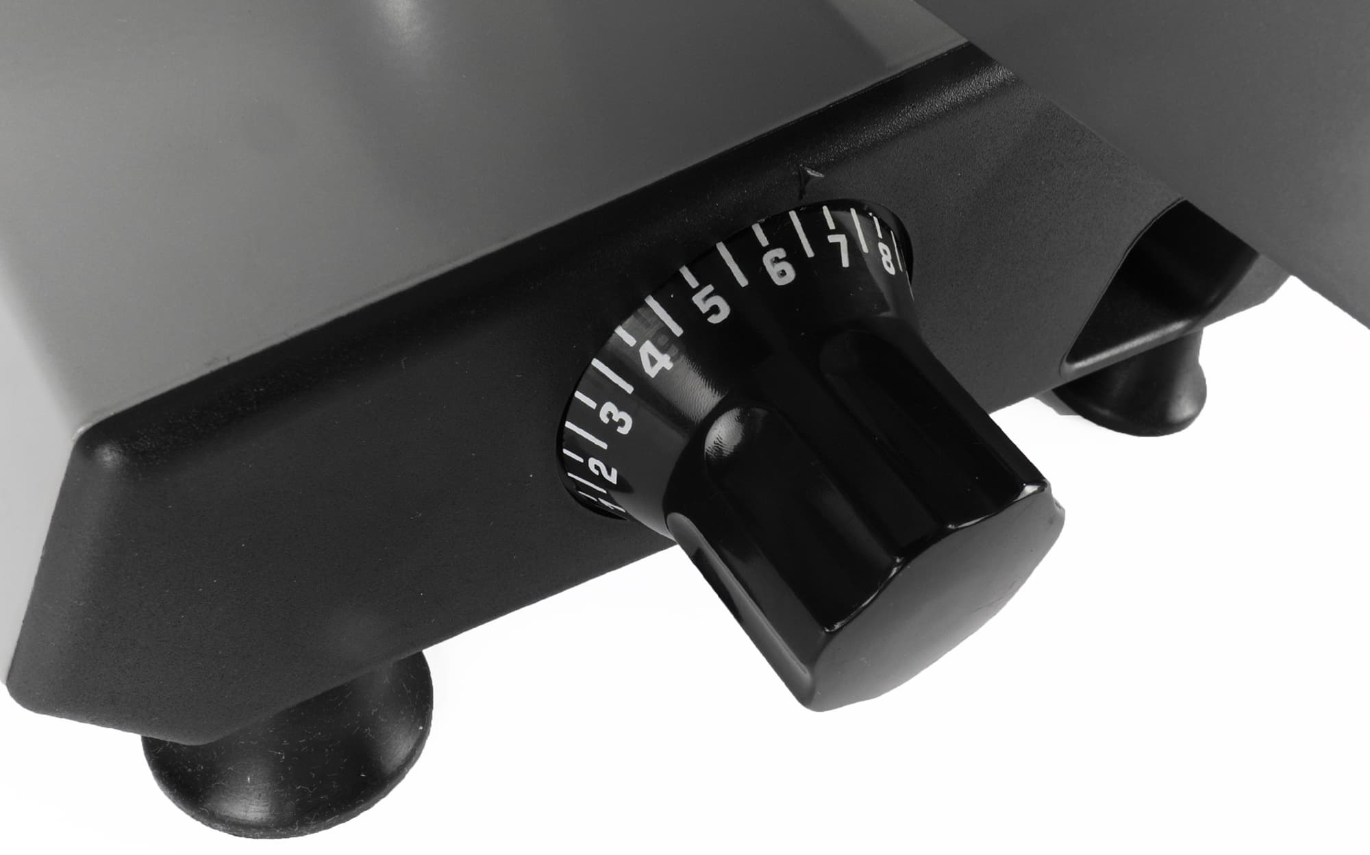 Сбоку прибора расположена кнопка включения и регулятор толщины нарезки.