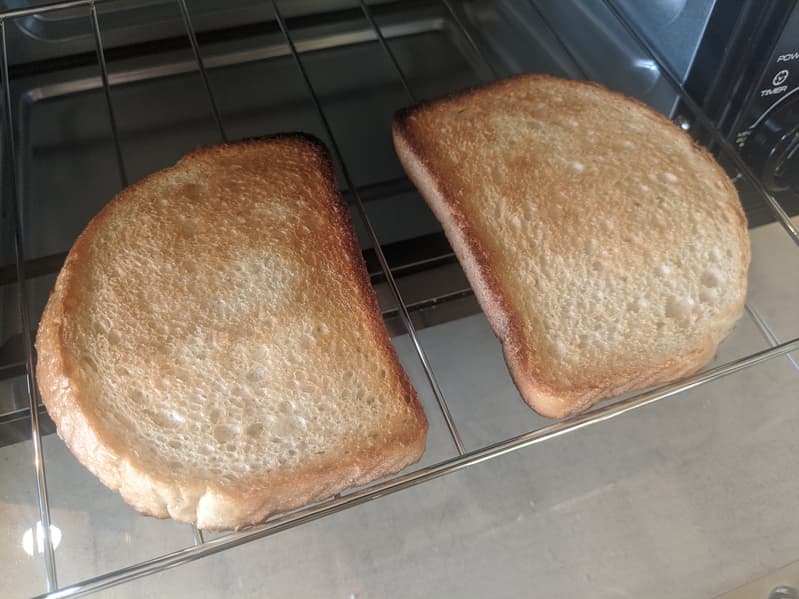 Нижняя сторона тостов по степени зажаренности не отличалась от верхней — за исключением, конечно, следов от решетки.