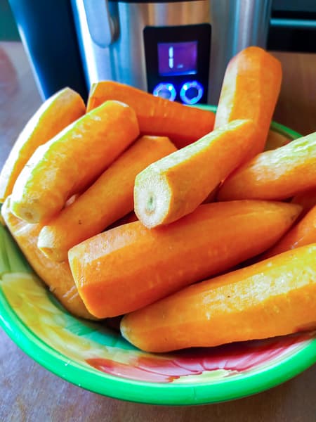 Морковины у нас были небольшие, так что мы их почистили, а резать не стали. Забрасывали в горловину по 2-3 штуки.
