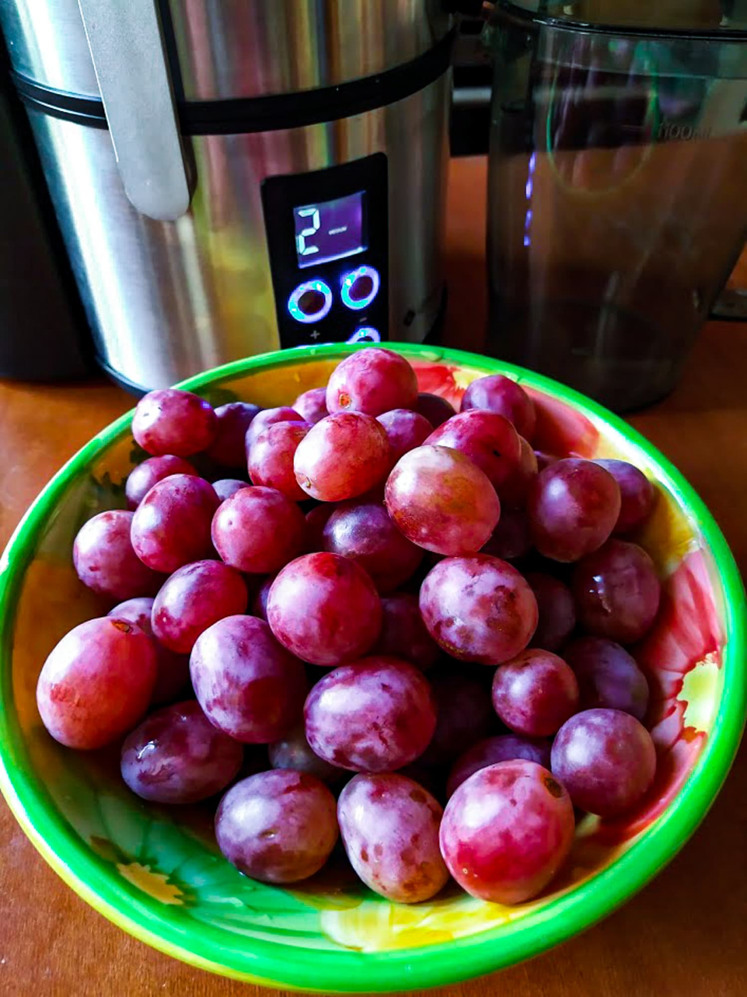 Напоследок решили проверить, как GL-PJ-366P поведет себя с мягкими плодами с жесткой шкуркой да еще и с косточками. Для этого взяли 900 граммов отличного красного винограда.