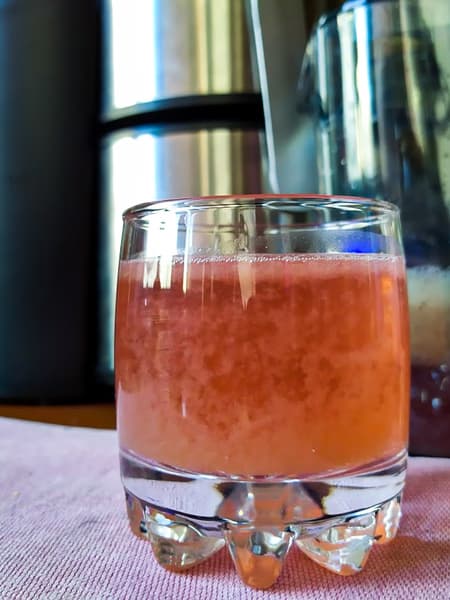 Сок непрозрачный, с бархатной текстурой. Кусочков свеклы, моркови или лимона в нем нет.