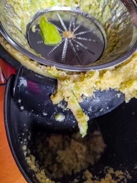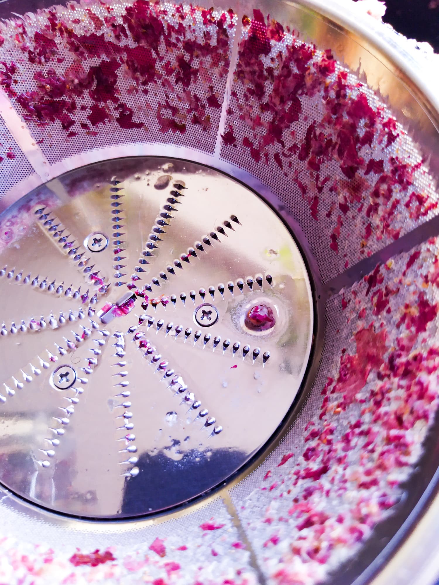 В фильтре только ошметки шкурки, следов от косточек почти нет — лишь одна не успела улететь в контейнер для жмыха.