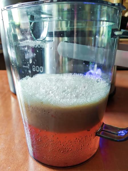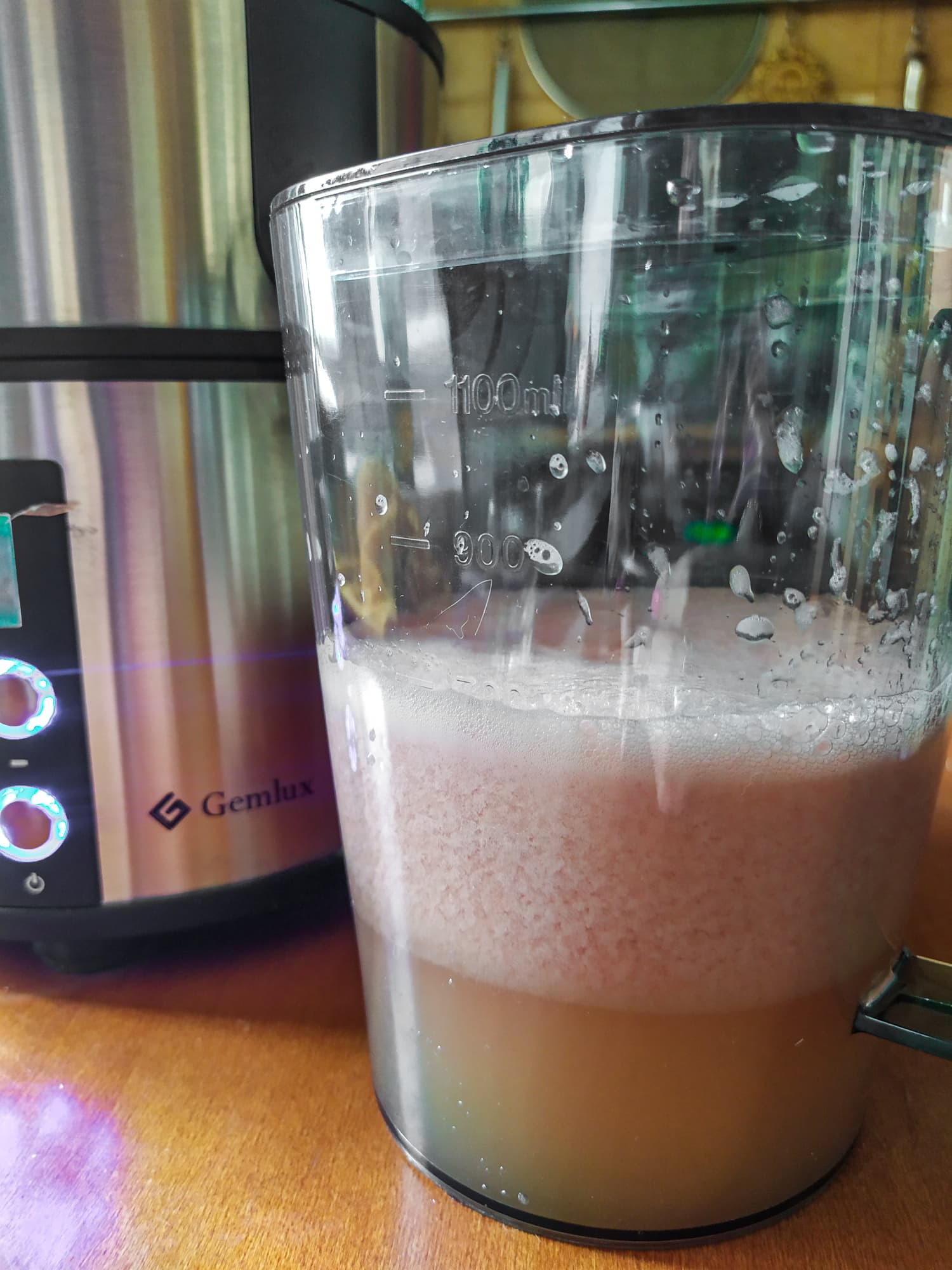 Спустя 34 секунды получили полкувшина сока с большим количеством пены — 580 граммов (58%).