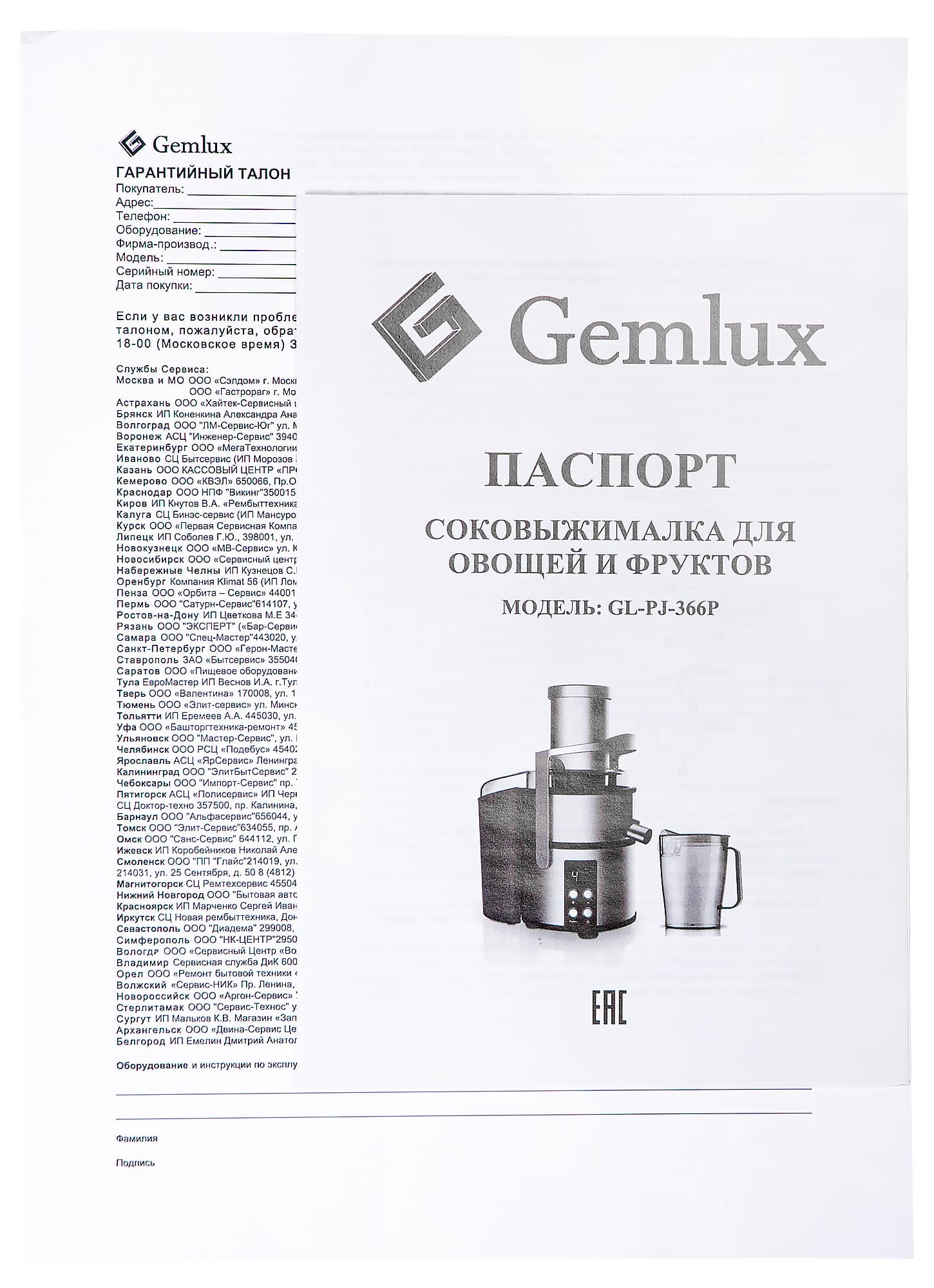 Gemlux GL-PJ-366P отлично зарекомендовала себя в ходе тестирования, продемонстрировав достойную производительность при высокой скорости отжима, и это с учетом не лучших результатов работы с цитрусовыми и мягким виноградом. Широкое загрузочное отверстие значительно сокращает время подготовки продуктов, а 4 скоростных режима плюс импульсный позволяют подстроиться под любой вид сырья.