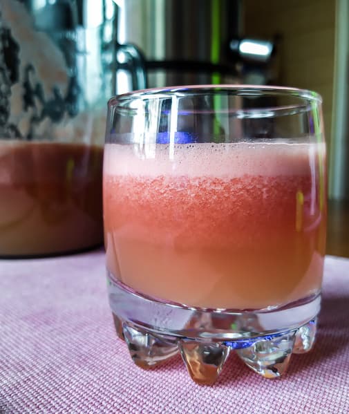 При переливании в стакан мякоть преодолевает пеноотсекатель и довольно долго плавает в соке. Через некоторое время она оседает, оставляя над собой совершенно прозрачный сладкий сок, в котором нет ни намека на вкус косточек.