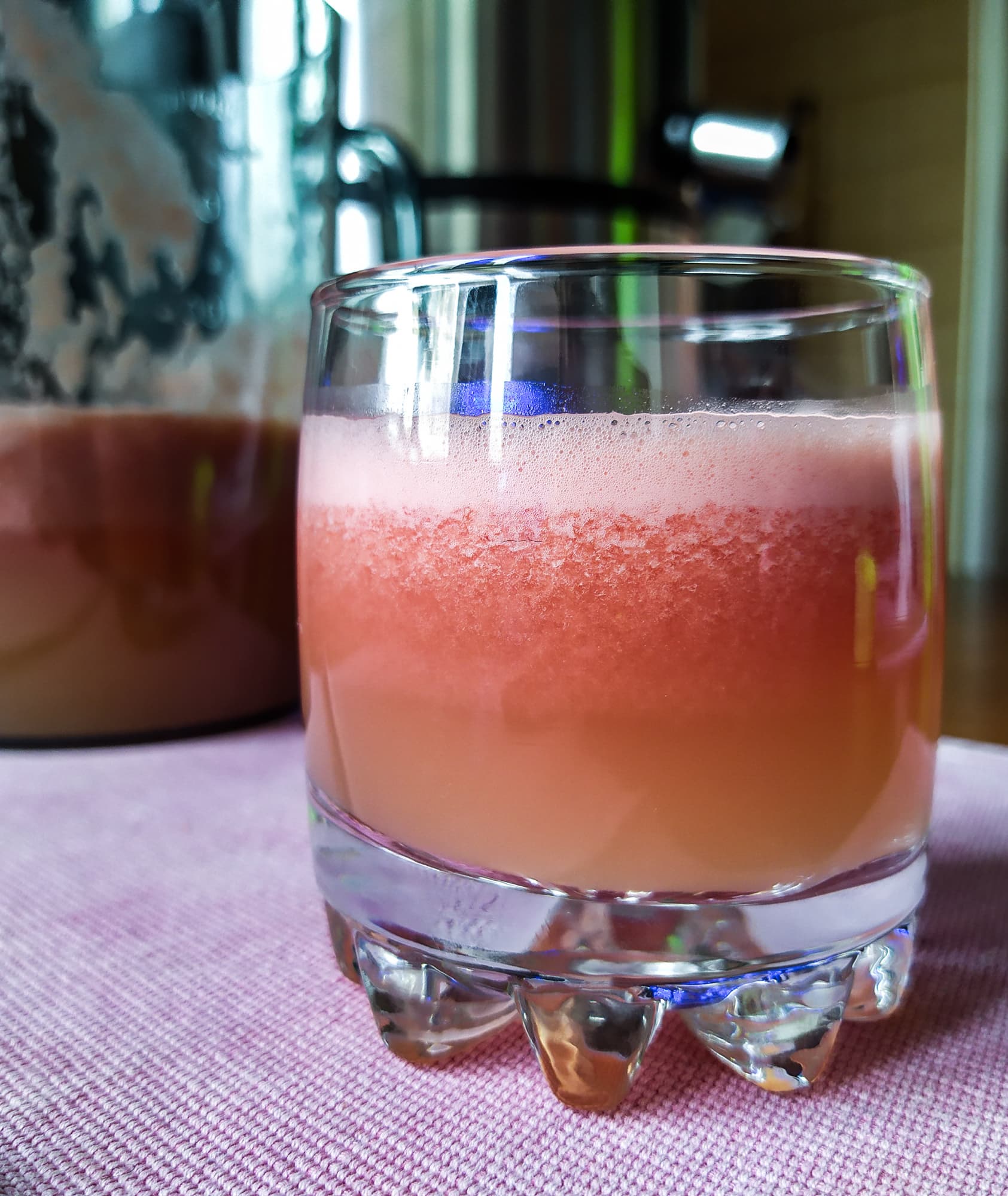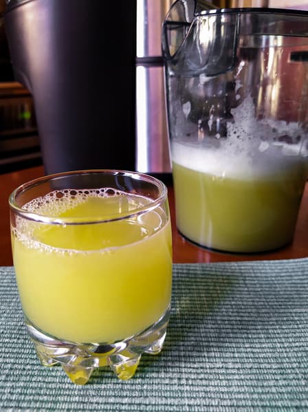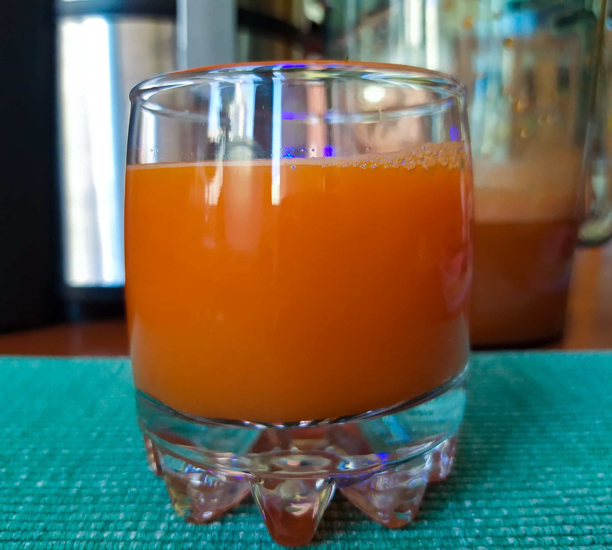Сок снова непрозрачный, но кусочков мякоти в нем нет. Пеноотсекатель сработал отлично.