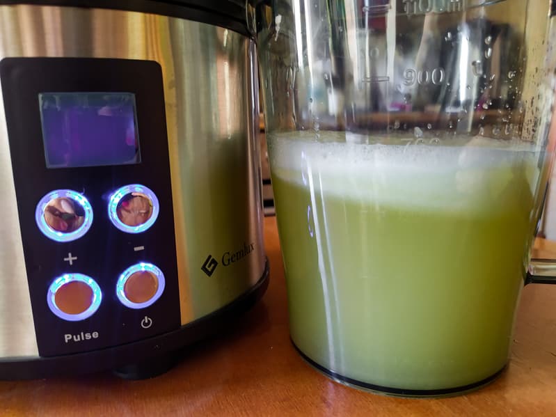 Средние значения скорости и эффективности по результатам четырех обязательных тестов для соковыжималки GL-PJ-366P от Gemlux составили 52 секунды и 599 граммов.