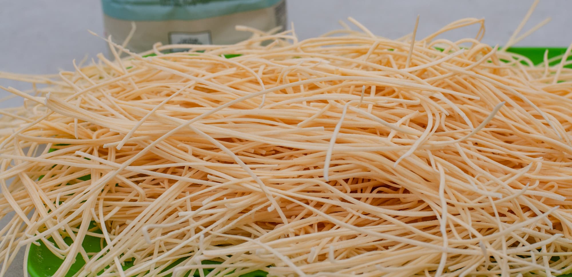 Лапшу высушили, подвесив на шпажках.