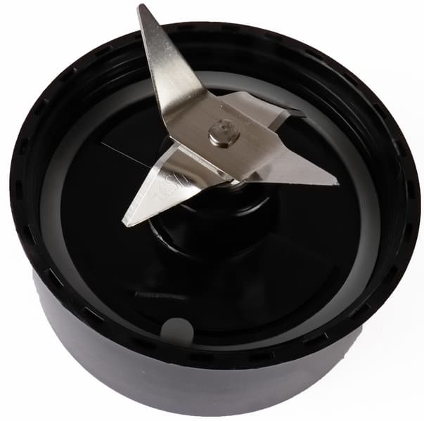 Сверху на моторном блоке находится выемка, в которую вставляется стакан, соединенный с ножами. Привычные четыре лепестка заточены с одной стороны и симметричны: два направлены вверх и два вниз. Блок с ножами сделан из черного глянцевого пластика с небольшими выступами на дне, которые помогают направлять жидкость в процессе работы. По краям от протечек страхует светло-серая прокладка, которую можно вытащить, чтобы промыть и просушить, а затем плотно вставить обратно.