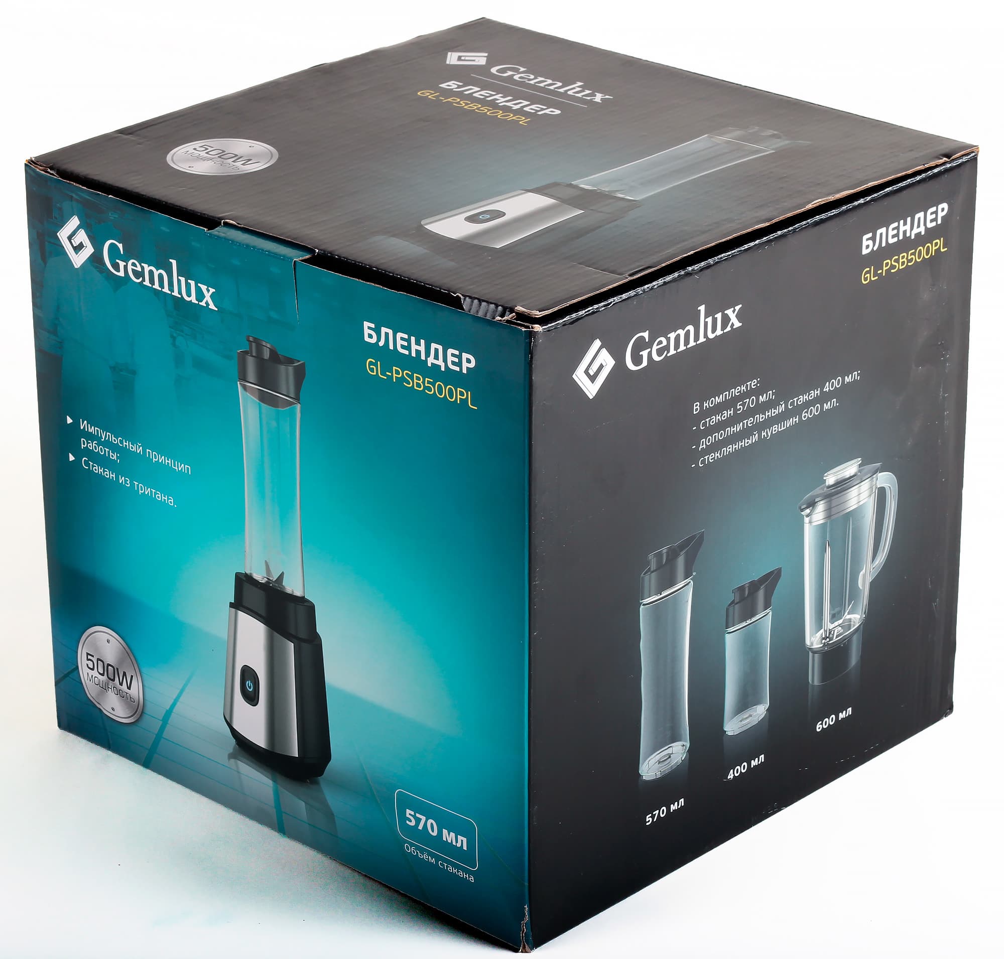 Прибор отличается небольшим размером (что позволяет назвать его персональным блендером), а также элегантным внешним видом и наличием в комплекте двух дополнительных стаканов, оснащенных герметичными крышками с отверстиями для питья. Причем готовить коктейли или смузи можно как в стандартном кувшине, так и в пластиковом стакане. Таким образом, пользователь блендера Gemlux GL-PSB500PL может за секунды взбить энергетический напиток прямо в стакане и бежать в тренажерный зал, не задумываясь о перекусе после интенсивной тренировки.