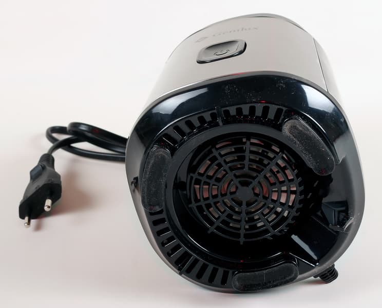 Со стороны дна мы видим вентиляционные отверстия и три ножки высотой около 1 см. На каждой из ножек закреплена прорезиненная присоска. Присоски удерживают прибор на одном месте во время работы и гасят возникающие по ходу взбивания или измельчения вибрации.