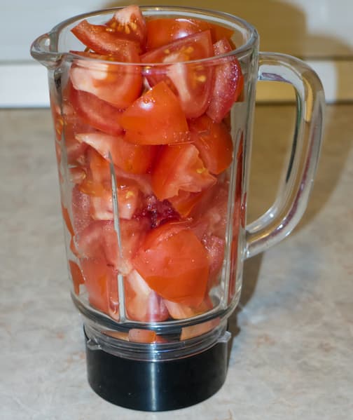 В стандартном для блендеров тесте мы измельчаем 500 г помидоров и замечаем время, в течение которого достигается максимально хороший результат, возможный для исследуемого прибора. Поскольку вместимость персонального блендера ограничена, мы наполнили его нарезанными томатами доверху. Итого в стеклянный кувшин вошло 460 г продукта.