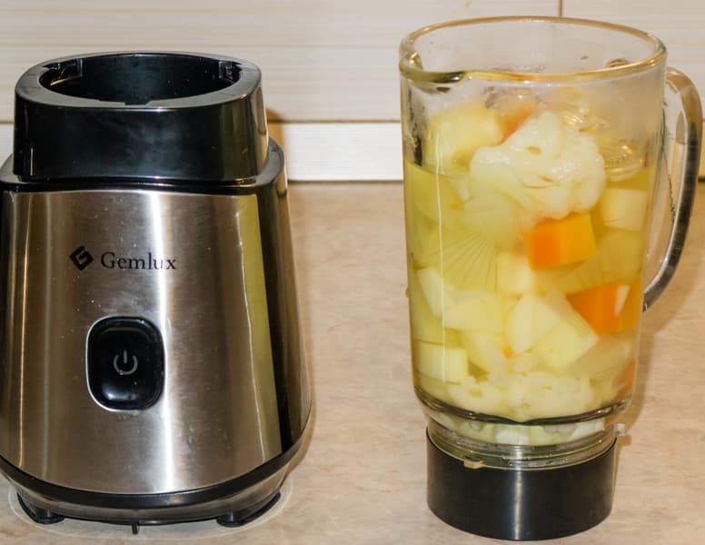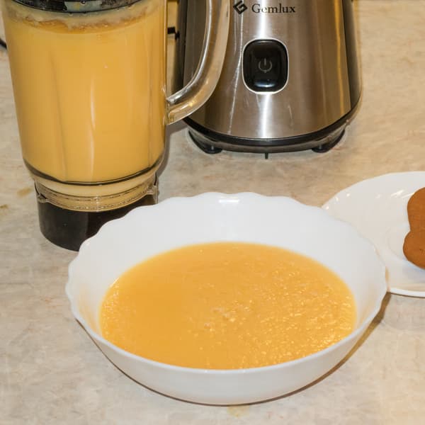 При включении горячее содержимое кувшина начинало выплескиваться через щель в центральном отверстии крышки — между самой крышкой и мерным колпачком. Пришлось остановить работу и слить немного жидкости. После этого измельчение пошло должным образом. Мощность в среднем составила около 270 Вт, максимум — 291 Вт. Работал прибор примерно 30 секунд. За это время овощи и отвар превратились в однородный суп-пюре. Структура гладкая, абсолютно гомогенизированная, взбитая и легкая.