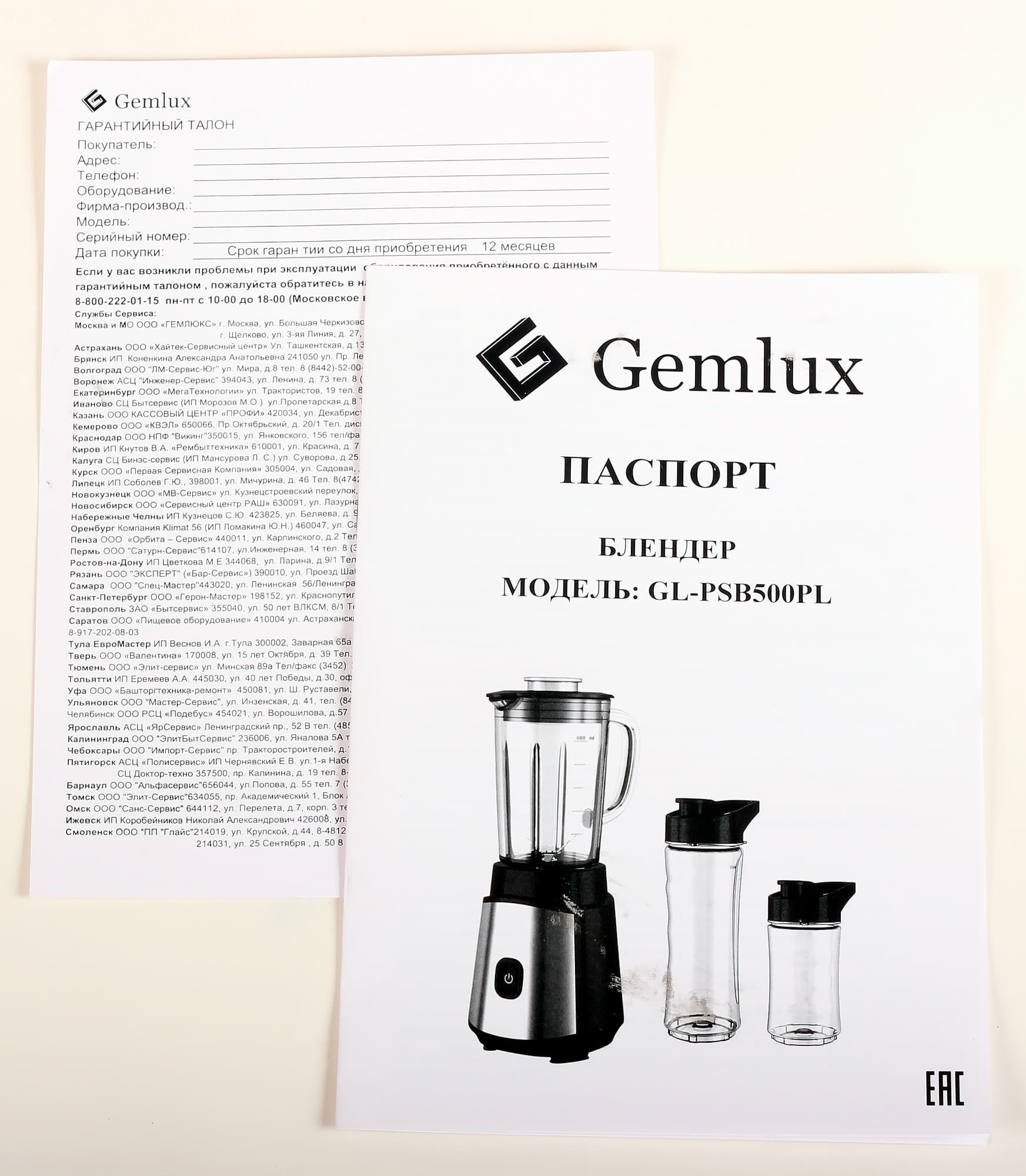Собственно, ничего особо неожиданного при осмотре персонального блендера Gemlux GL-PSB500PL мы не обнаружили — хорошее качество изготовления, типовая конструкция и комплектность. Порадовал внешний вид устройства в целом, отличная сборка и малый вес пластиковых стаканов.