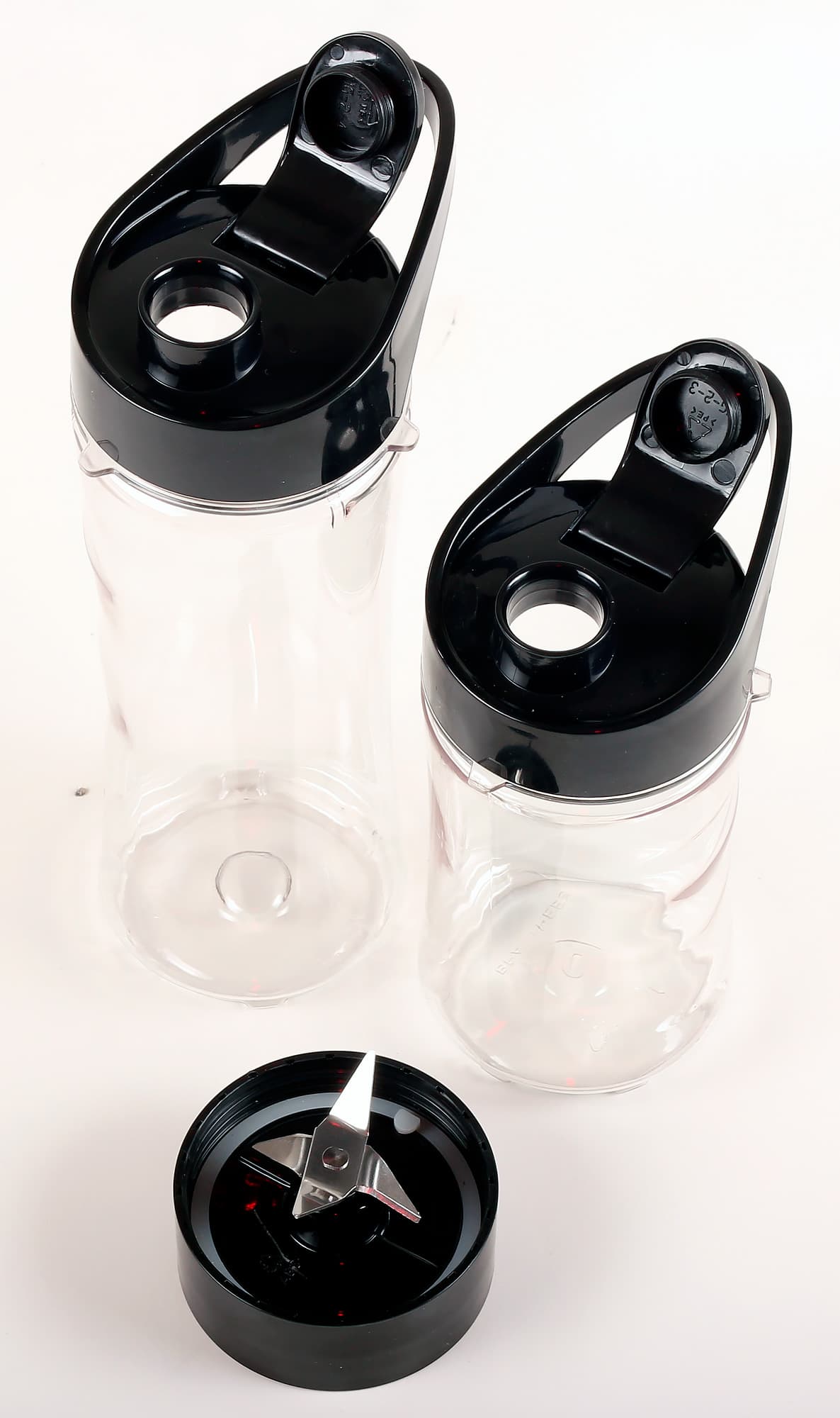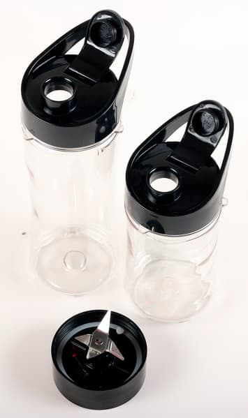 Блендер укомплектован стеклянным кувшином и двумя стаканами разного объема, изготовленными из тритана. Стаканы оснащены крышками с ручками для переноски и отверстиями для питья. Благодаря наличию дополнительного блока ножей, приготовить напиток можно прямо в индивидуальном спортивном стакане. Кстати, отметим небольшой вес стаканов, что делает их эксплуатацию комфортной — пользователю будет совсем необременительно взять приготовленный в стакане напиток с собой в тренажерный зал, на прогулку или работу.