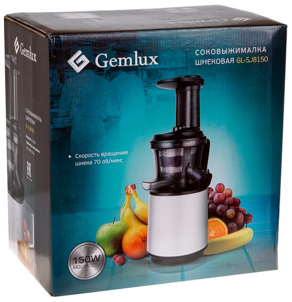 Вертикальная шнековая соковыжималка Gemlux GL-SJ8150 — крепкий, простой (если не сказать примитивный) и достаточно мощный агрегат для переработки больших количеств овощей и фруктов на сок. Один грейпфрут или апельсин к завтраку с ее помощью, пожалуй, выжимать не стоит, уж больно велики потери продукта, а вот заготовить литров пять сока для вечеринки или разделаться с рекордным урожаем из собственного сада-огорода — это уже по ней. Ограничивает только время непрерывной работы — не больше 15 минут. Но за это время можно столько отжать, если все подготовить!..