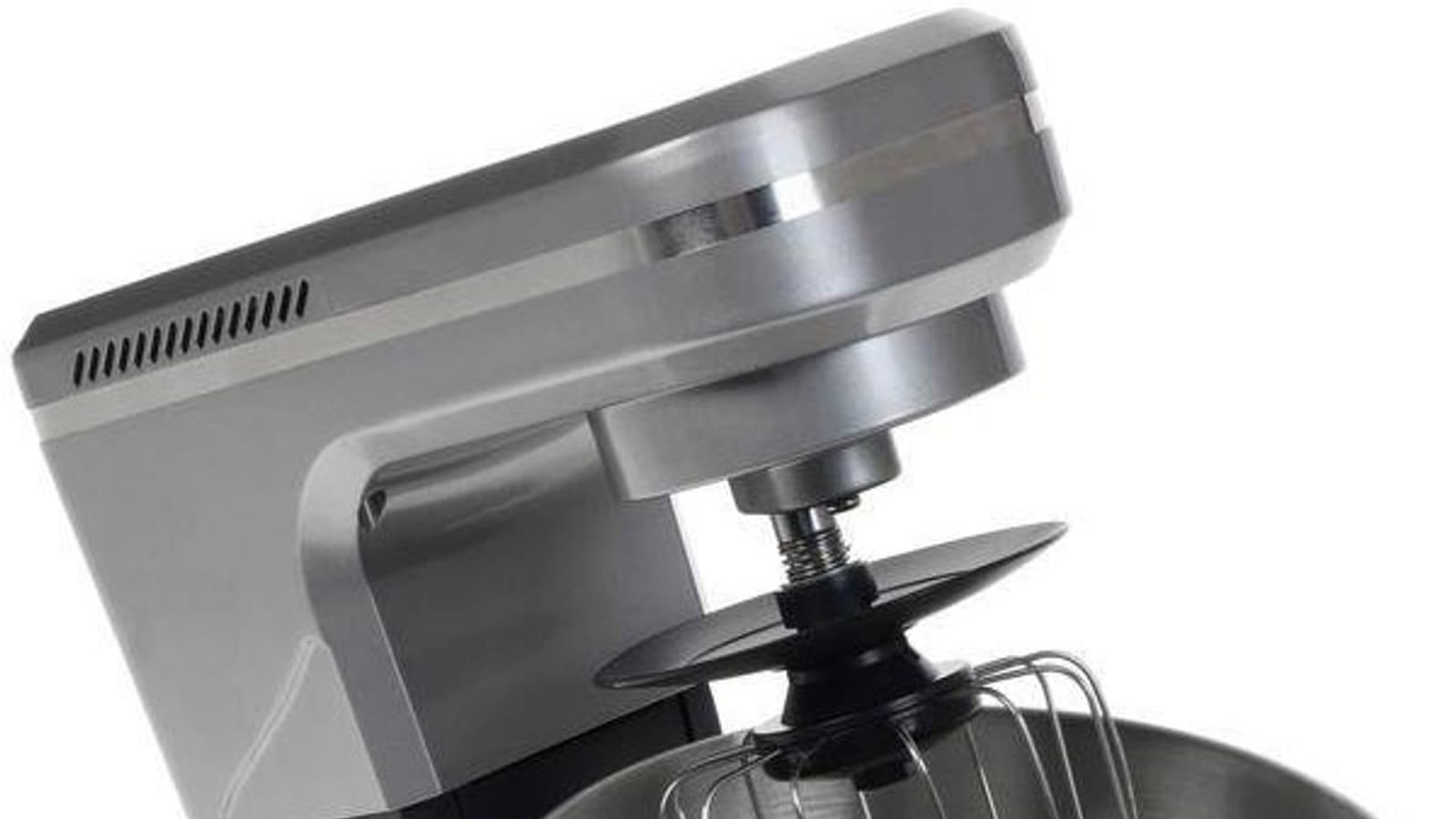 Однако она состоит из двух частей: на нижней, переходящей в платформу, расположена вращающаяся рукоять управления миксером и рычаг для поднятия и опускания откидной головки с насадками. Верхняя же является частью откидной головки, чья горизонтальная часть тоже достаточно тонкая и визуально легкая. Ее дополнительно украшает светлая отделочная полоса посередине, что делает модель GL-SM5.1GR еще симпатичнее.