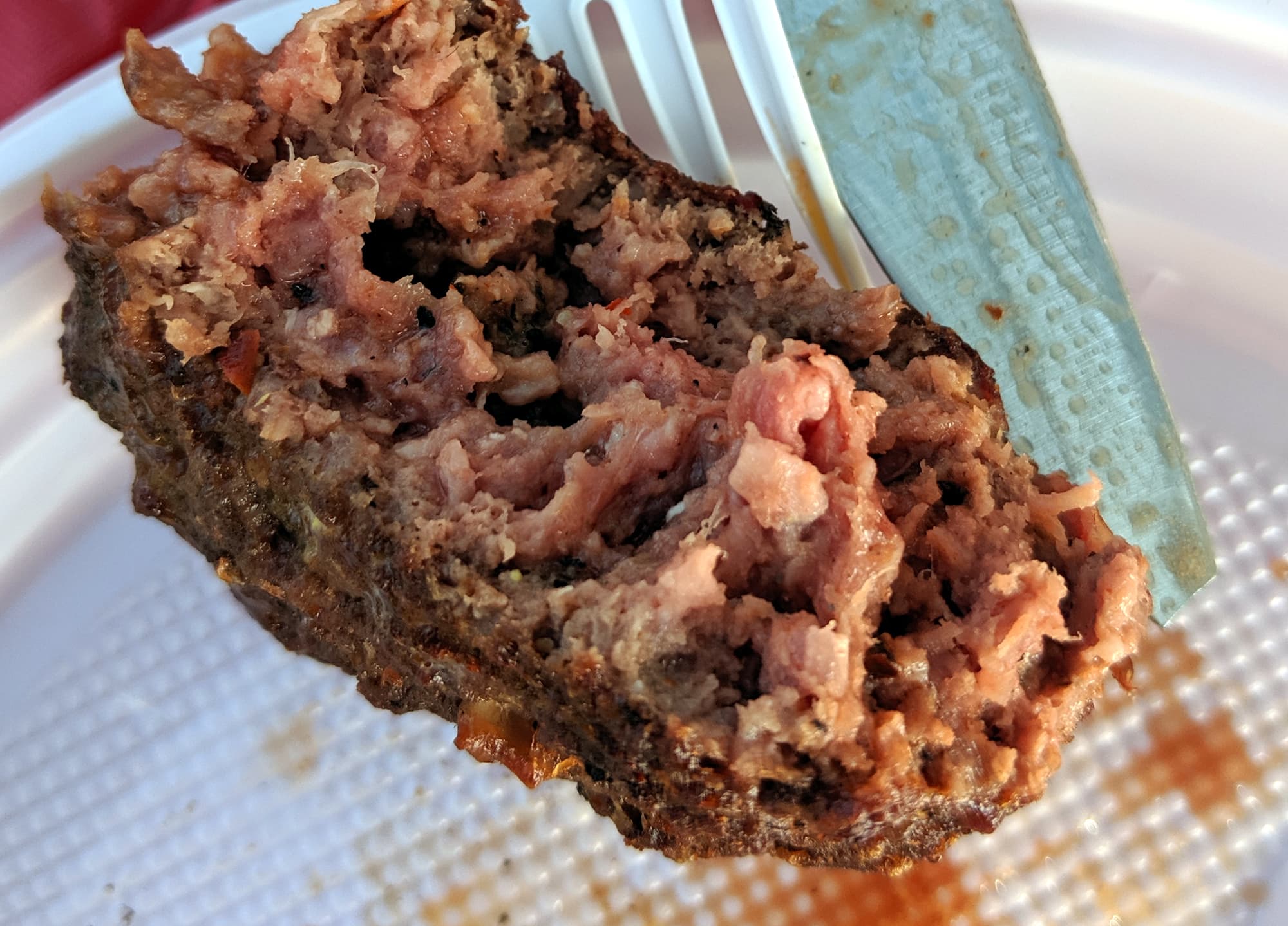 750 граммов говяжьего фарша мы в течение трех минут смешивали битером с солью и молотым черным перцев. Сначала мы включили вторую скорость, но через минуту переключили на третью. Миксер работал равномерно, не останавливаясь и не меняя звук мотора на прерывистый. В этот раз мы не использовали крюк, так как битером фарш смешивался хорошо.