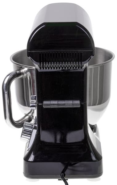 Присоски, находящиеся на ножках, отлично справляются со своим предназначением — миксер устойчиво и надежно стоит на столе, не сдвигается даже при замесе «тяжелого» теста или при работе на высоких скоростях. При замесе плотного теста слегка приподнимается и опускается откидная головка, что является допустимой и даже нормальной ситуацией. Никаких вибраций в основании корпуса мы не заметили.