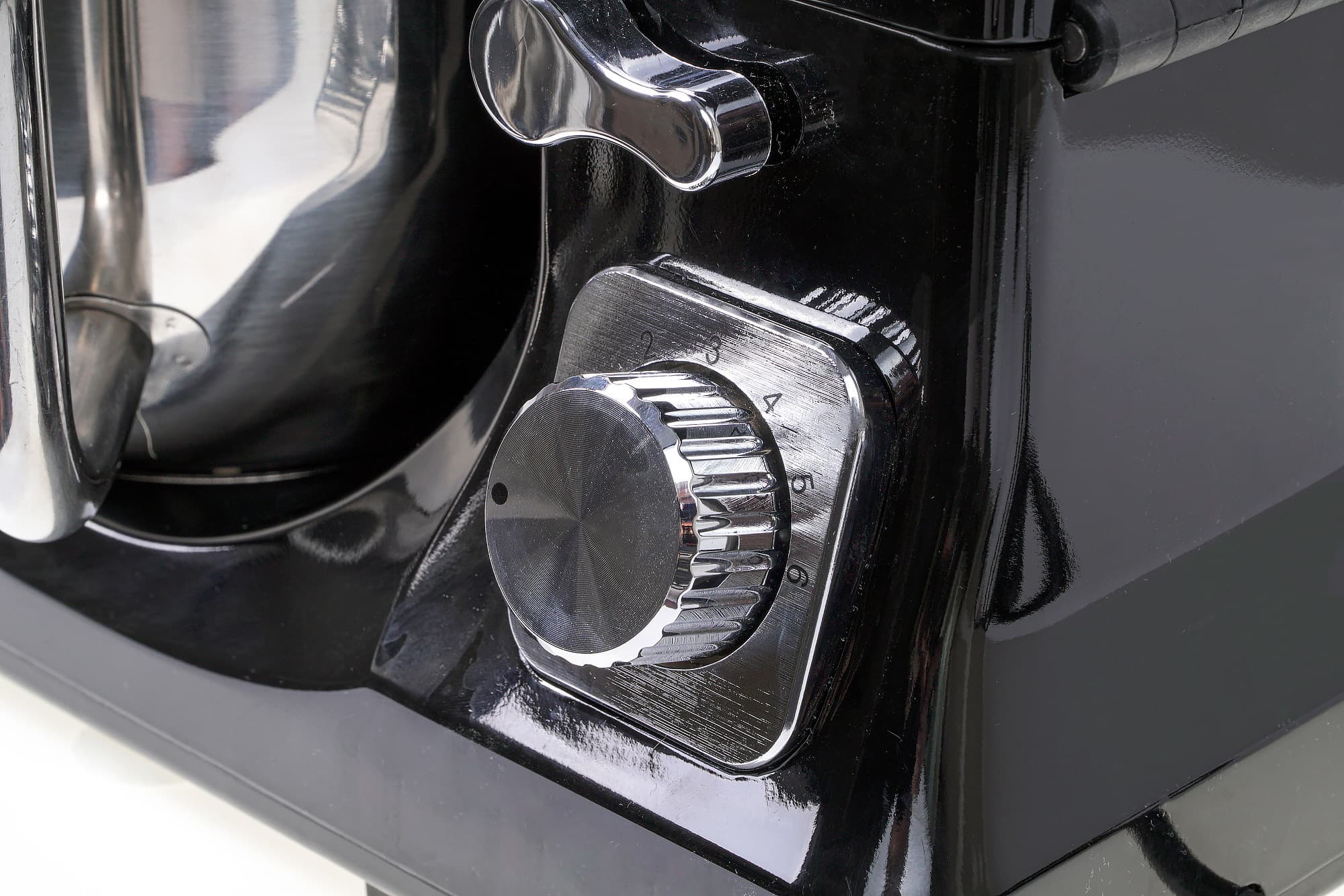Управление планетарным миксером Gemlux GL-SM5.2 не представляет никаких сложностей. Регулятор, расположенный справа на лицевой стороне прибора, имеет 8 рабочих положений: импульсный режим, выключение и шесть рабочих скоростей.