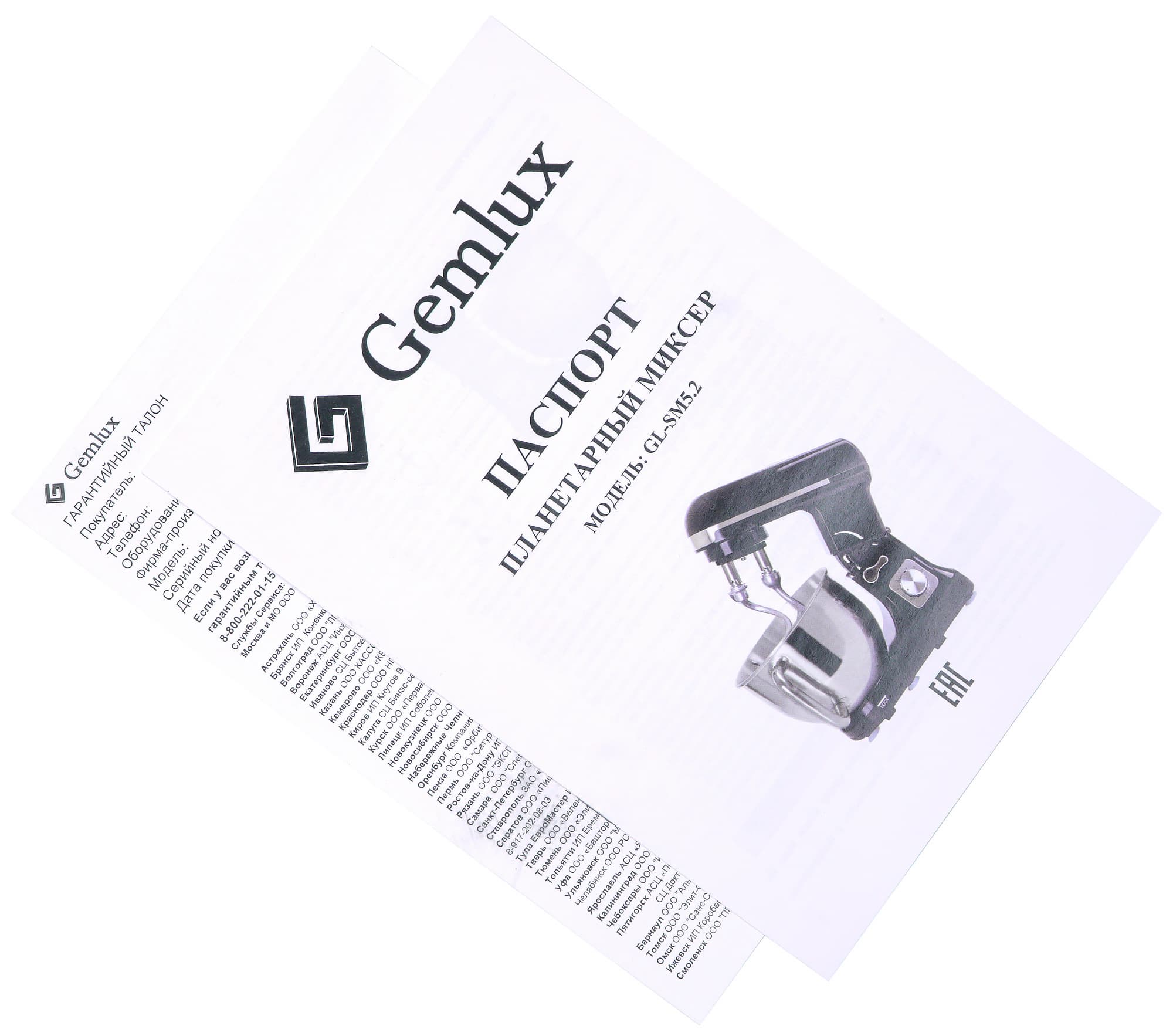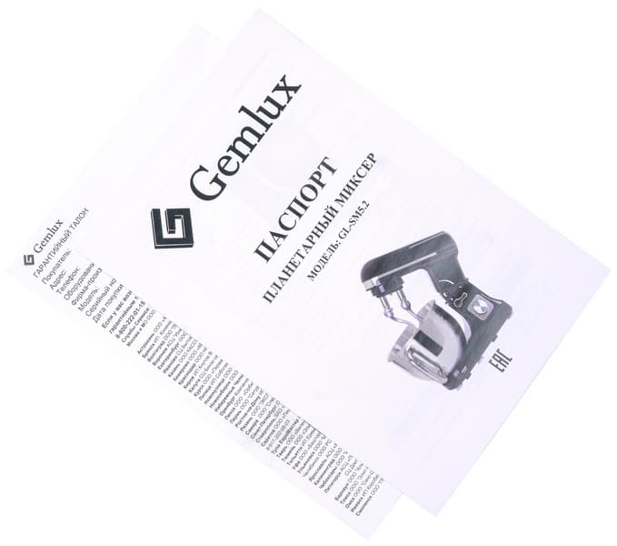 Визуальное знакомство с планетарным миксером Gemlux GL-SM5.2 оставило у нас хорошее впечатление: отдельные детали и узлы качественно изготовлены, сборка прибора аккуратна. Способы фиксации чаши и насадок привычны и не затруднительны; интерес вызывает лишь конструкция насадки для замеса теста с двумя крюками.