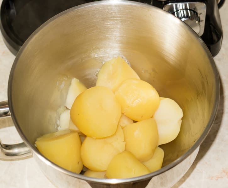 Картофельное пюре осталось именно пюре, не превратилось в клейстер. Однако оказалось не слишком однородным — в массе встречались отдельные кусочки неразмолотого картофеля. Возможно, виноват в этом не миксер, а сорт картофеля. Тем не менее отметим, что насадке не всегда удавалось снять со стенок кусочки продукта даже при работе на второй скорости, поэтому на первом этапе работы мы один раз останавливали миксер и сгребали картофель со стенок дежи в центр.