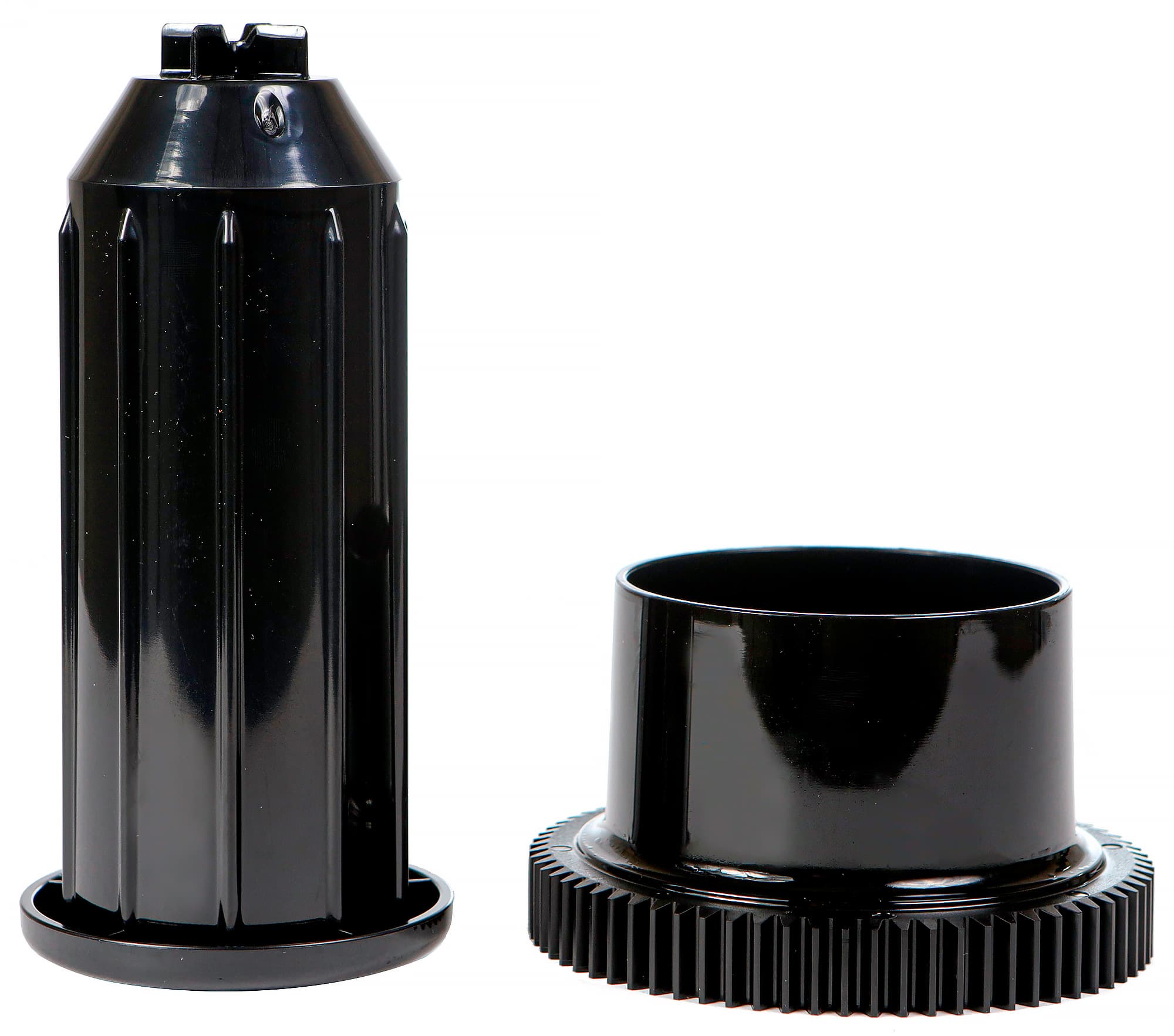 Вращается насадка с ножами благодаря размещению в детали, которая в инструкции названа моторным блоком. Аксессуар представляет собой цилиндр с зубчатым венцом, на который передается крутящий момент от шестерни, расположенной в верхней части корпуса.