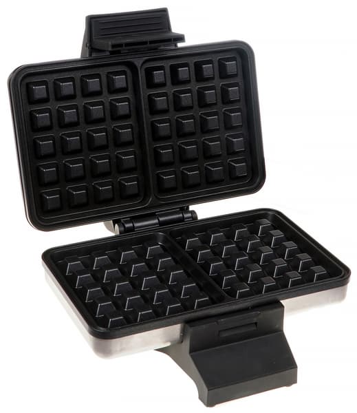 Вафельница располагается надежно и устойчиво в раскрытом виде. Желания придержать верхнюю панель не возникает. В открытом положении панели расположены друг по отношению к другу под углом более 90°, так что закладывать тесто будет легко, а риск испачкать верхнюю жарочную поверхность отсутствует. Крышка поднимается и опускается плавно, без скрипа и щелчков.