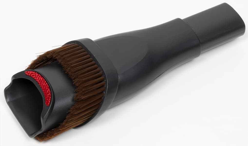 На нижней части насадки закреплена велюровая накладка алого цвета, облегчающая скольжение по мебельной ткани.