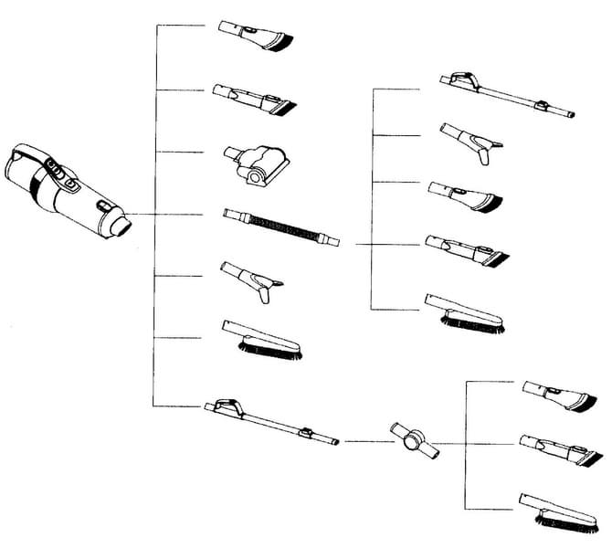 Перед началом работы пылесос следует собрать. Удлинительную трубку с рукояткой нужно вставить в отверстие напольной насадки до щелчка, а моторный блок закрепить на получившейся конструкции.